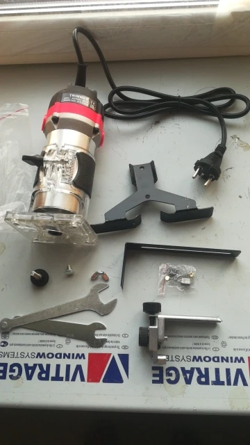 для мелочей вполне годная, с прозрачного пластикаопоры(упор)- говно. набор фрез обычный,дешёвый,но вполне годный. о точности работы нет речи если что. в целом меня устраивает.