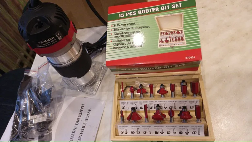 Товар добротный за свои деньги, набор фрез тоже не плохой. Для домашних работ годится.