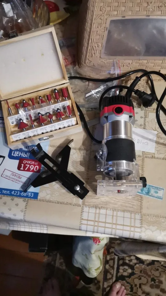Фрезер работает. В комплекте были фрезы, острые. За такую цену, для дома самое то. Если не занимается постоянно с деревом, то думаю будет работать. Рекомендую продавца. По мере работы буду дополнять отзыв.