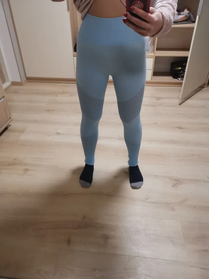 Неоднозначное впечатление.. Сели по размеру хорошо, брала s на параметры 63-89 и рост 158, одни из немногих с али нормальные по длине, даже есть запас. Ткань мягкая эластичная, в желтом цвете очень требовательна к белью (даже бесшовное телесного цвета чуть светит спереди и выделяется контур), подчеркивает все + и - фигуры, леггинсы для тех, кому надо подчеркнуть и показать, а не скрыть и утянуть. Одевать сложно из-за перфорации, нужно натягивать аккуратно, как эластичные колготы, иначе очень быстро пойдут стрелки. Хорошая плотная резинка из двойной ткани способна немного скорректировать область живота и талии. В то же время, однотонная светлая ткань в области ягодиц подчеркнет малейшие,даже незначительные , недостатки, если есть на попе целлюлит -всë будет видно. Доставка была быстрой, около двух недель в МО.