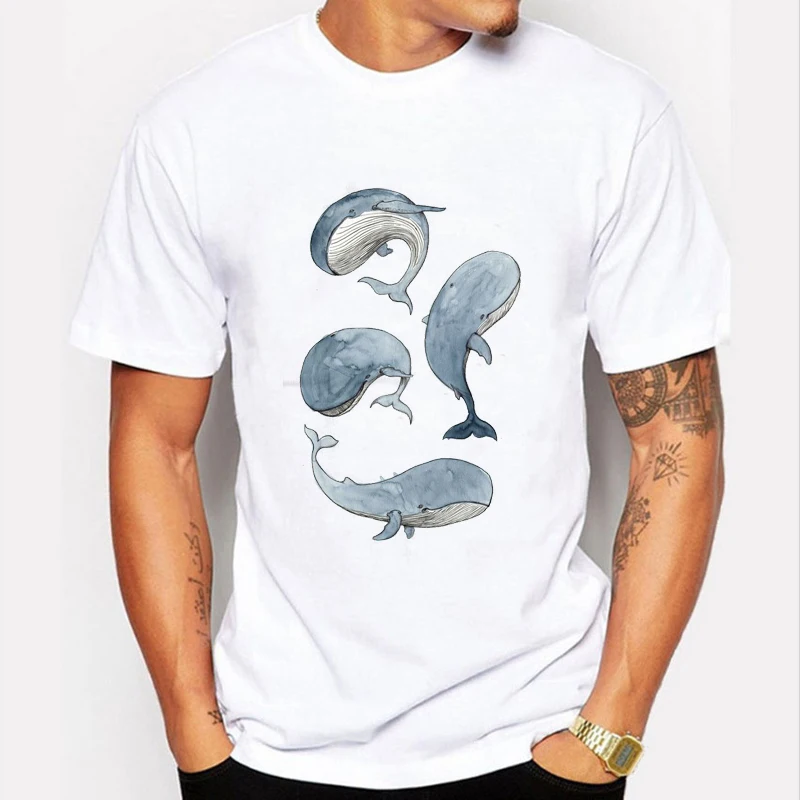 Мужская футболка Reative с принтом Кита и акулы, модные дизайнерски...
