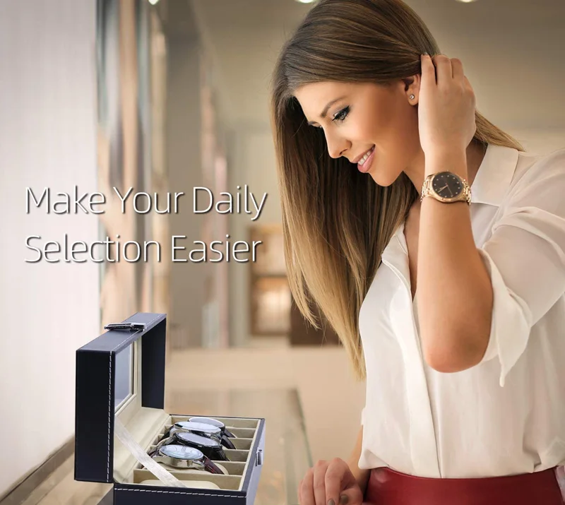Лучше отображать часы в любом магазине или в комоде. Идеально подходит для личного или делового использования. Цвет: черный Посылка включает в себя: 1 x коробка для часов (другие не входят в комплект)