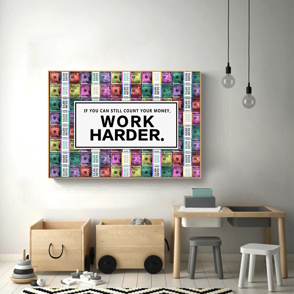 Вдохновляющее настенное искусство абстрактные деньги работа более твердая картина на стену постеры и печать Декоративные Картины домашний декор
