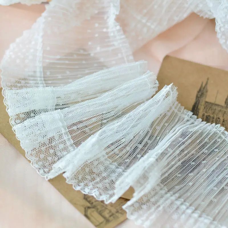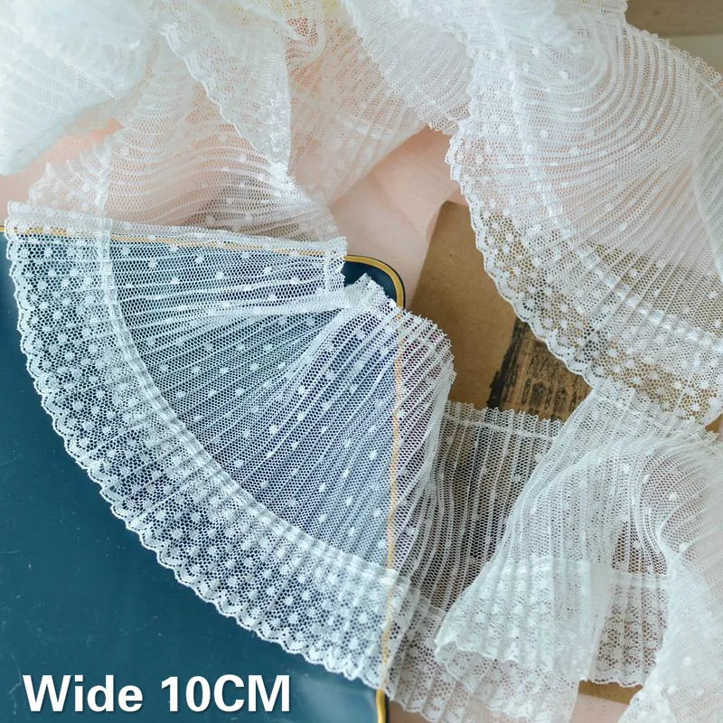 Сетчатая кружевная лента в мелкий горошек 10 см в ширину, с оборками, кружевная лента с вышивкой, свадебное платье принцессы, Швейные аксессуары для одежды