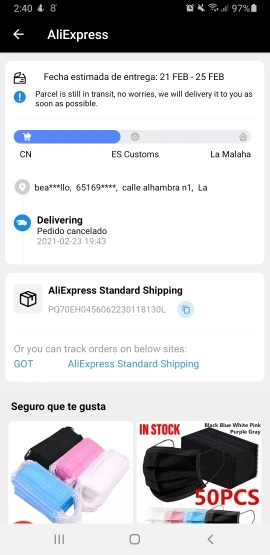 Страна: ES Color: black- 50 piece Доставка: Standard Shipping 19.03.2021