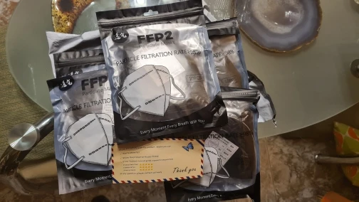 Заказ получен в ближайшее время и очень хорошо упакован в пакеты по 10 штук. Как на фотографиях рекламы и одобрены ffp2 Европейским сообществем. Я призываю вас купить у этого продавца так ответственно и искренне. Received in 9 days.