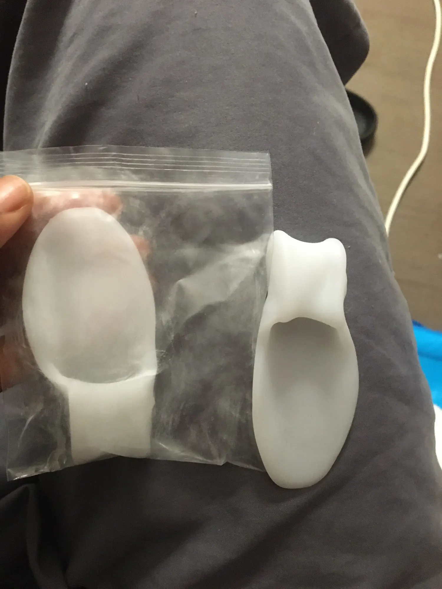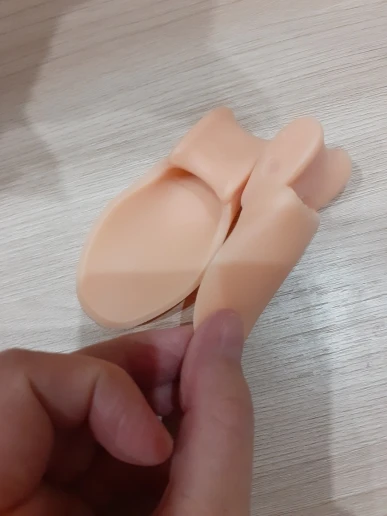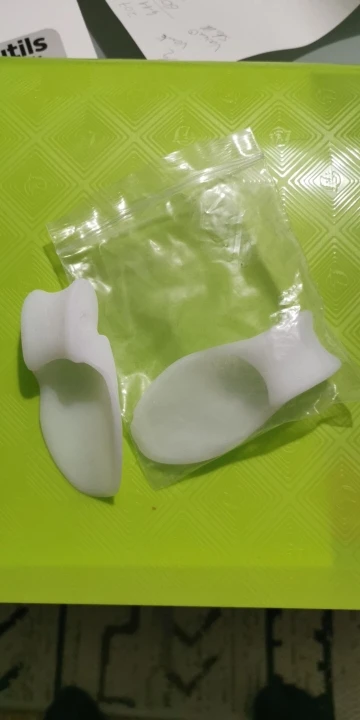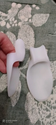 Почему-то думала, что они должны быть более твердыми, а они прямо очень мягкие. За счёт этого, правда, достаточно приятно ощущаются между пальцами, но накладка на косточку никакой особо функции не несет, только что прикрывает её немного. Будут использоваться просто как распорки между пальцами