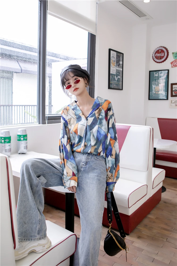 CHEERART, церковная цветная глазурованная блузка с длинным рукавом, Женская Повседневная Свободная рубашка с отворотом и пуговицами, 2020, корейская модная одежда