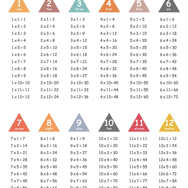 Таблица с умножением на 1-12 раз, Настольная диаграмма, Постер по математике, холст для обучения, настенное украшение для детской комнаты