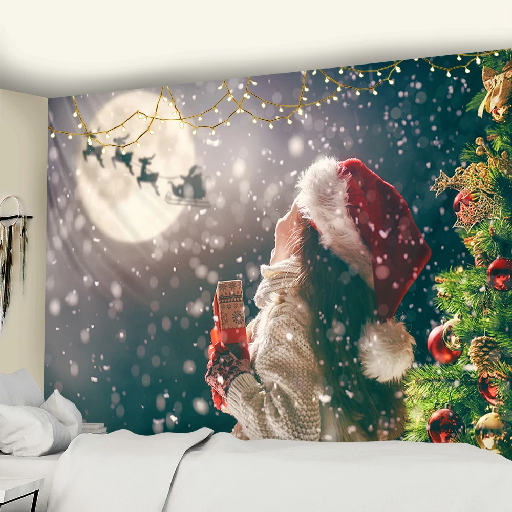 Рождественское искусство настенный подвесной гобелен Дед Мороз и снег Рождественский олень декорация для дома подарок