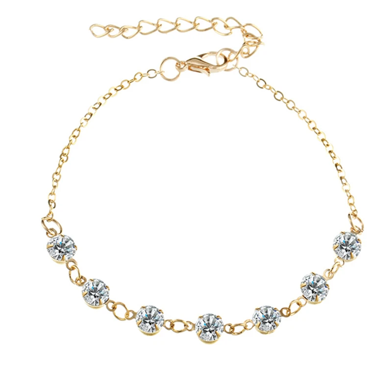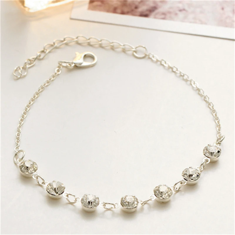 Элегантный минималистичный ножной браслет с кристаллами, Блестящий Металлический ножной браслет, Женский ножной браслет на ногу, аксессуары, ювелирные изделия для женщин вечерние