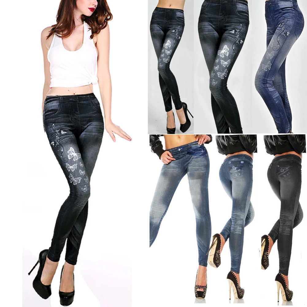 Женские джинсовые леггинсы с принтом, осенние джинсовые брюки скинн...
