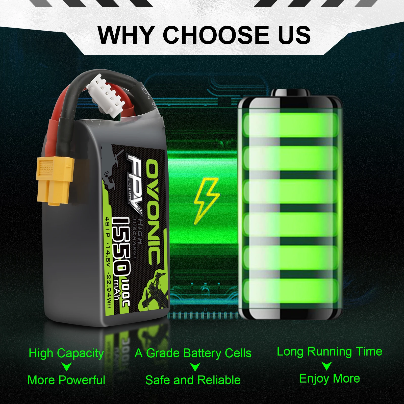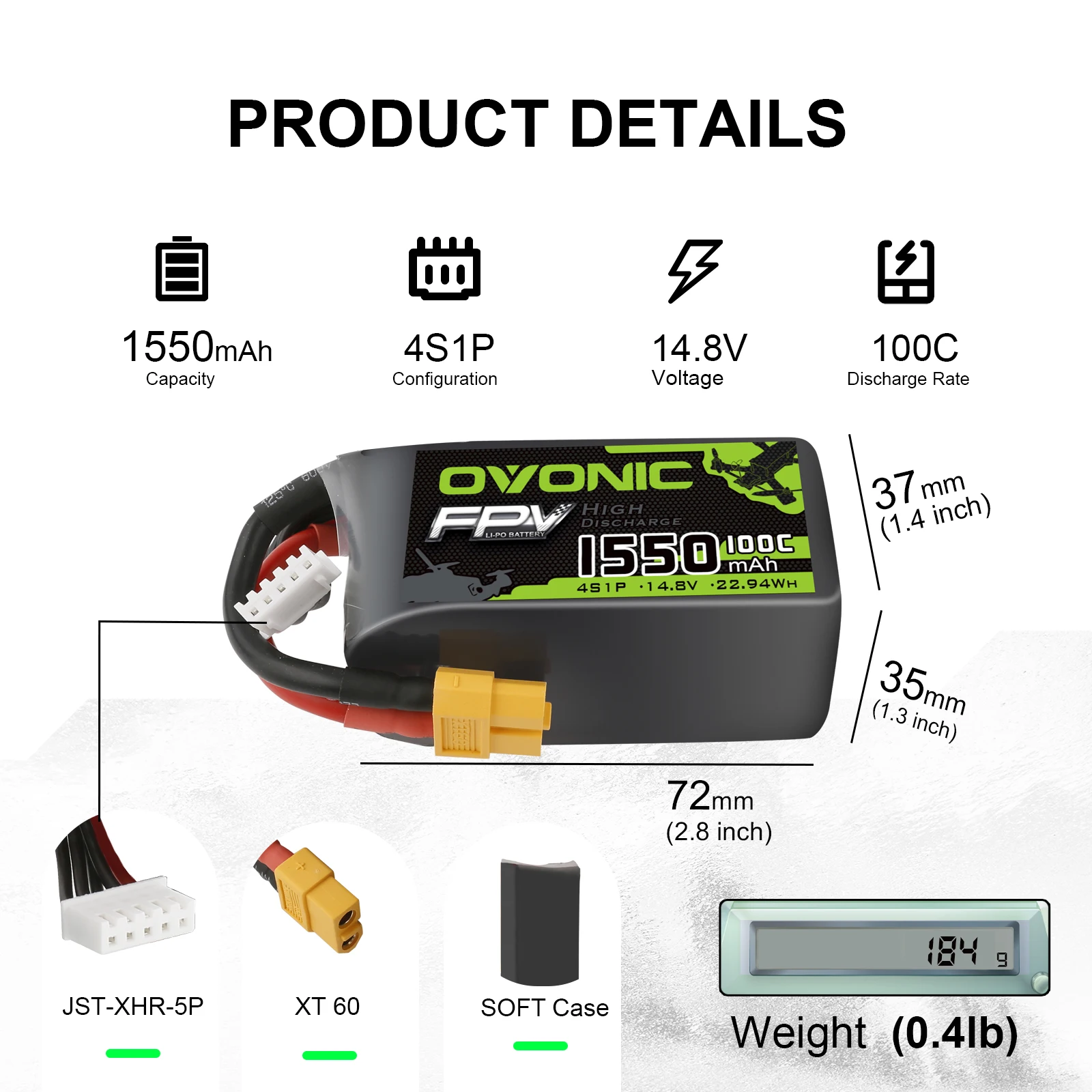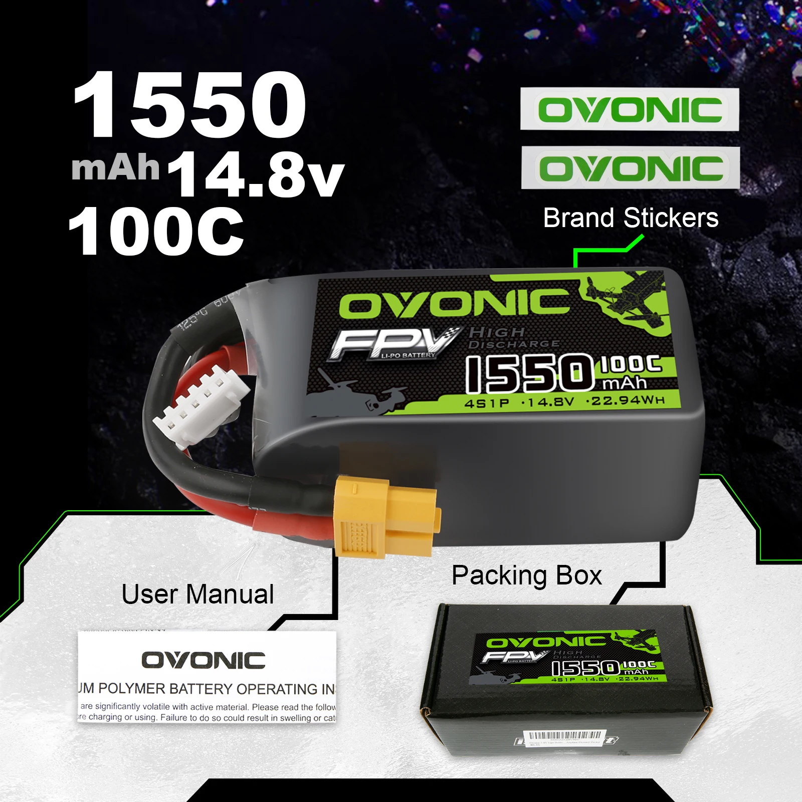 Аккумулятор OVONIC 14,8 В 1550 мА ч 4S 100C LiPo с разъемом XT60 для FPV Freestyle FPV racing 1 шт. 4 шт.