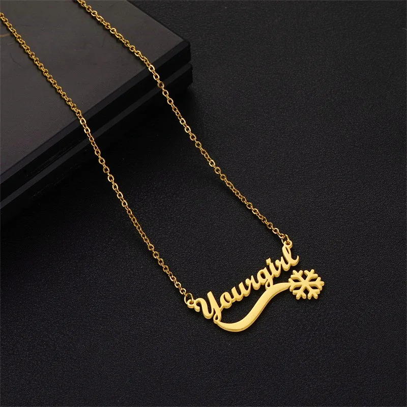 Ожерелье из нержавеющей стали с индивидуальным именем для женщин на заказ Снежинка именная тарелка ожерелья Рождественский и Новогодний подарок