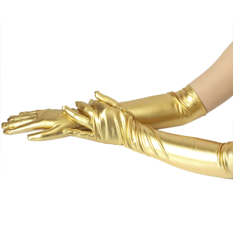 Золотистые, серебристые, влажные, искусственная кожа, искусственная кожа, вечерние варежки для выступлений, женские сексуальные длинные латексные перчатки до локтя