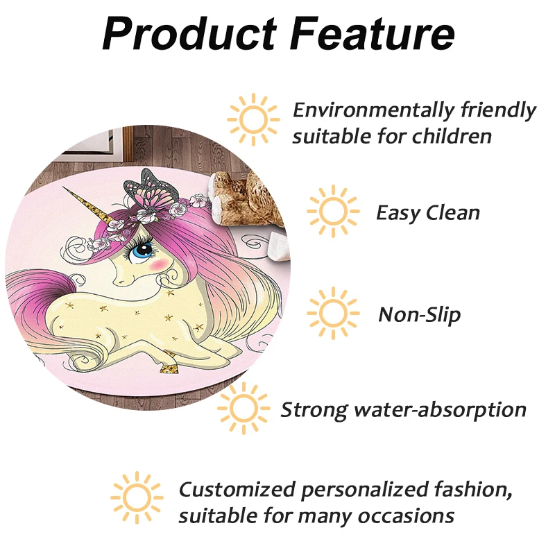 Круглые Нескользящие коврики с изображением единорога, для спальни, для девочек, ковровый Декор