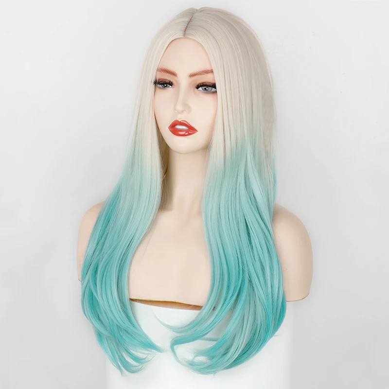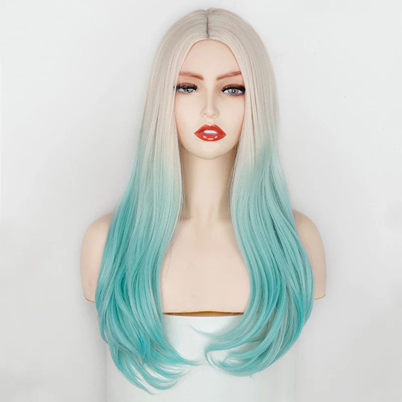 Синтетические парики для женщин, сине-зеленые, с эффектом деграде, ...