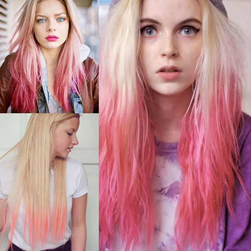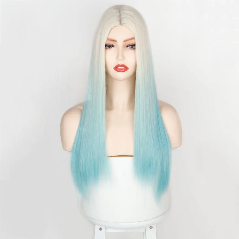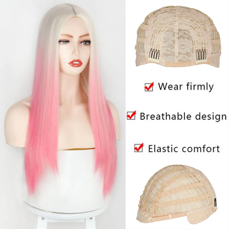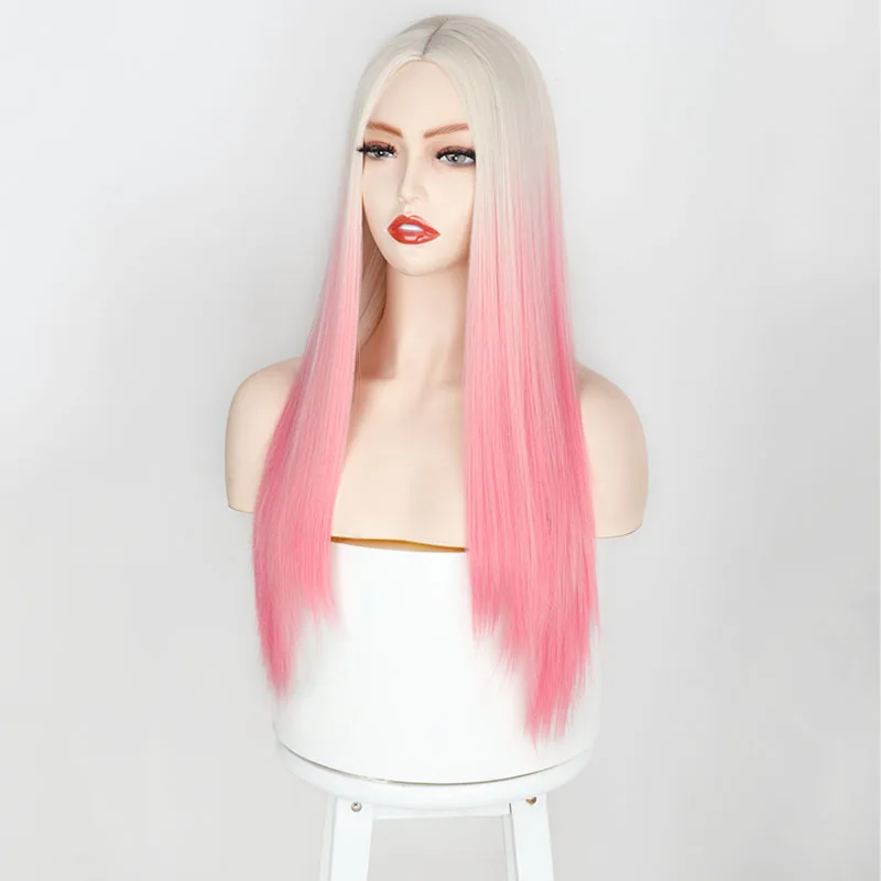 Синтетические волосы от белого к розовому Омбре, Длинные прямые парики, двухцветные вечерние волосы, парик для косплея для женщин