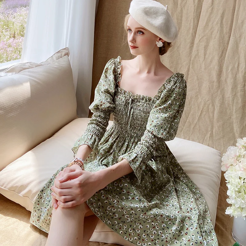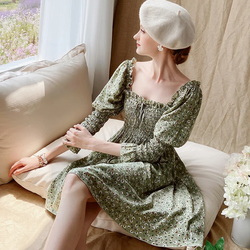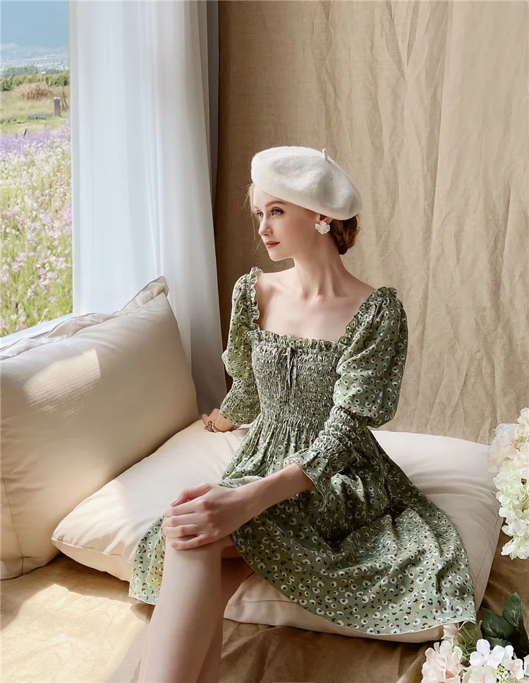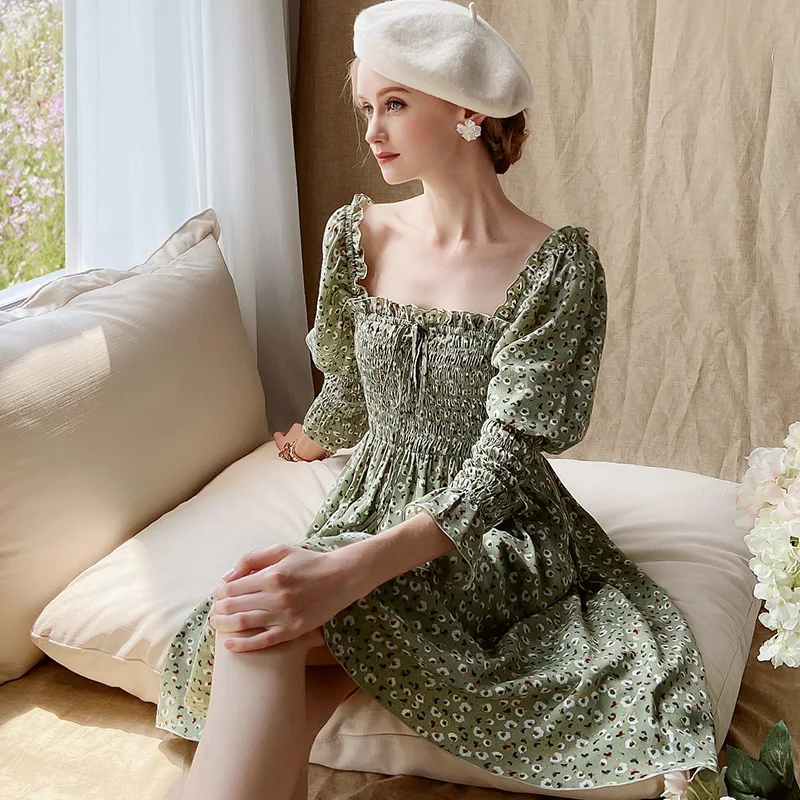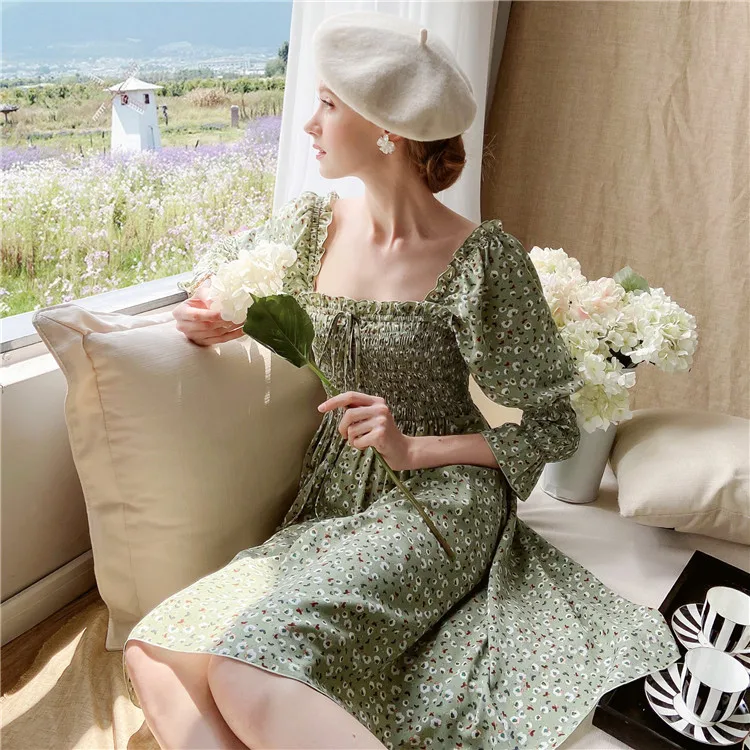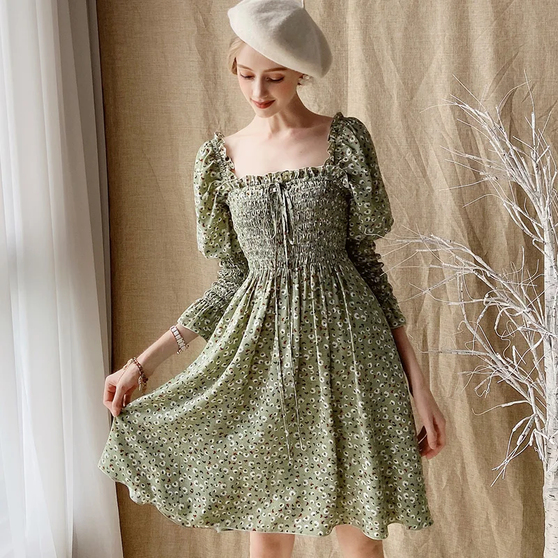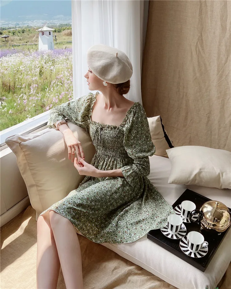 Женское винтажное платье Dabuwawa DT1CDR003, платье с квадратным вырезом, бантом и рукавами-фонариками