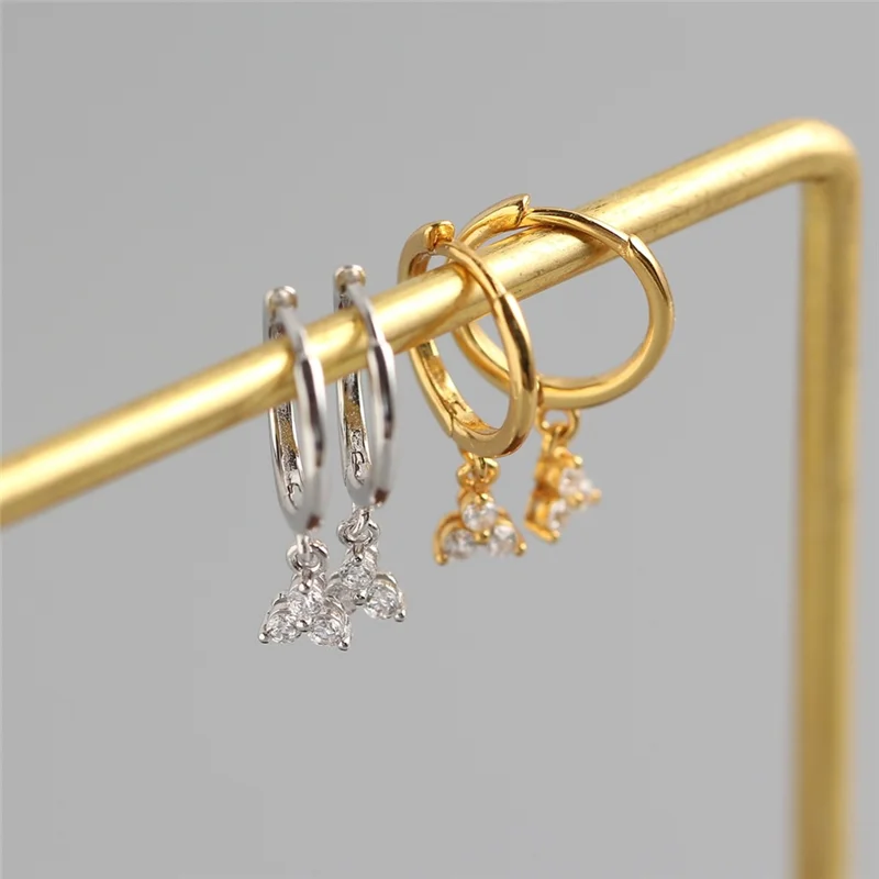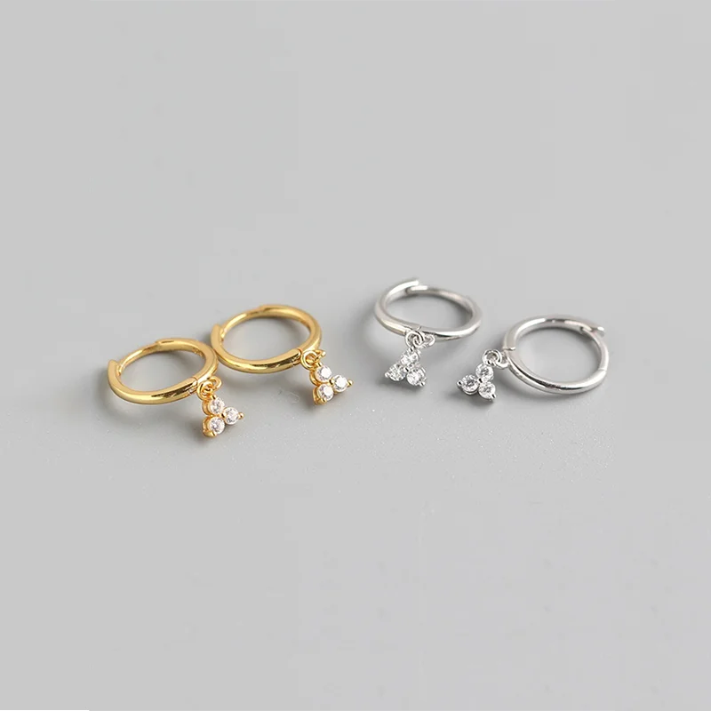 WOOZU реальные 925 Серебро Белый Циркон с геометрическим рисунком клевера шик, свисающие серьги для женщин, серьги романтическая пара Ювелирное Украшение на день рождения