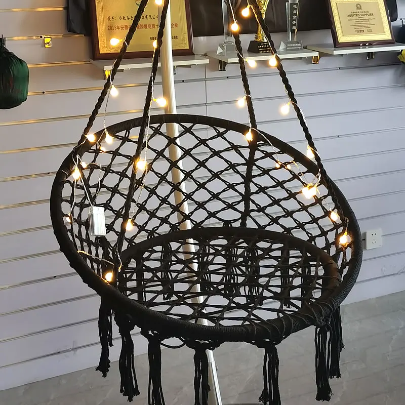 Подвесной, в технике макраме гамак кресло со светодиодными огнями