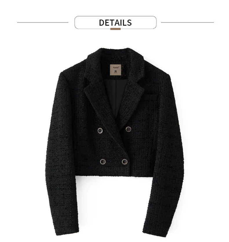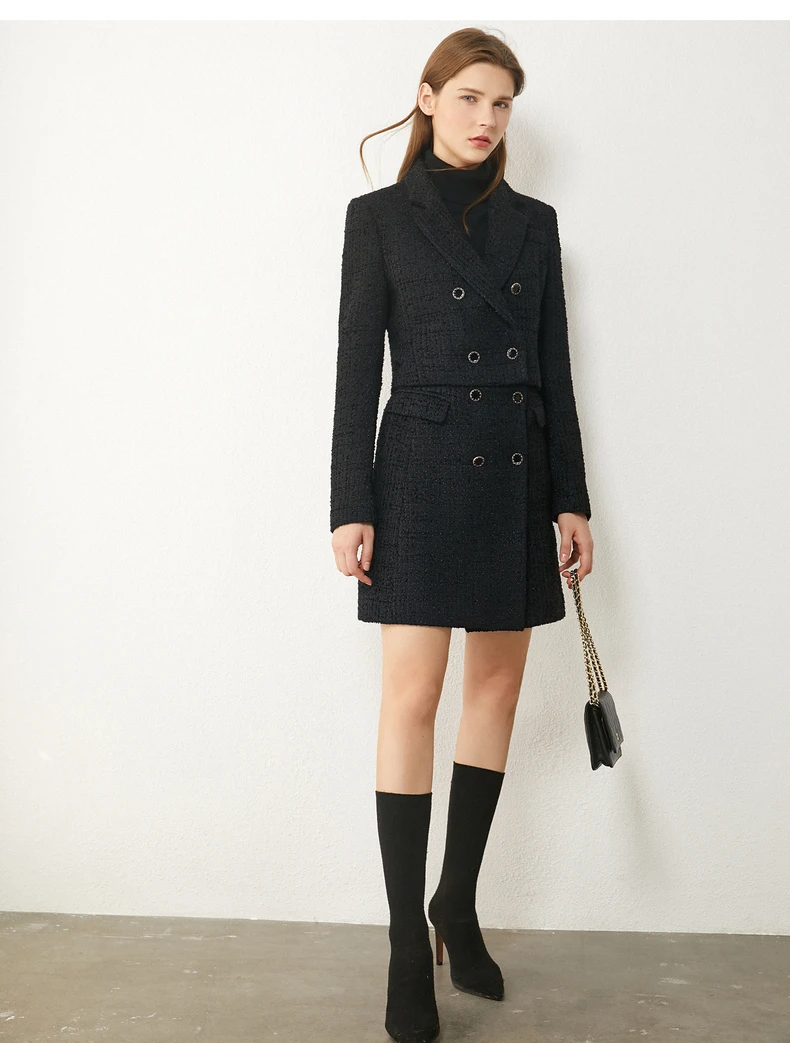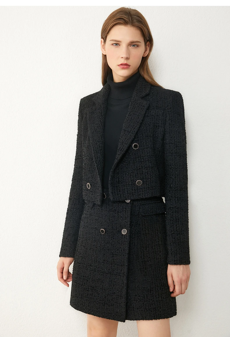 Пиджак женский твидовый с высокой талией, Осень-зима, 12030292