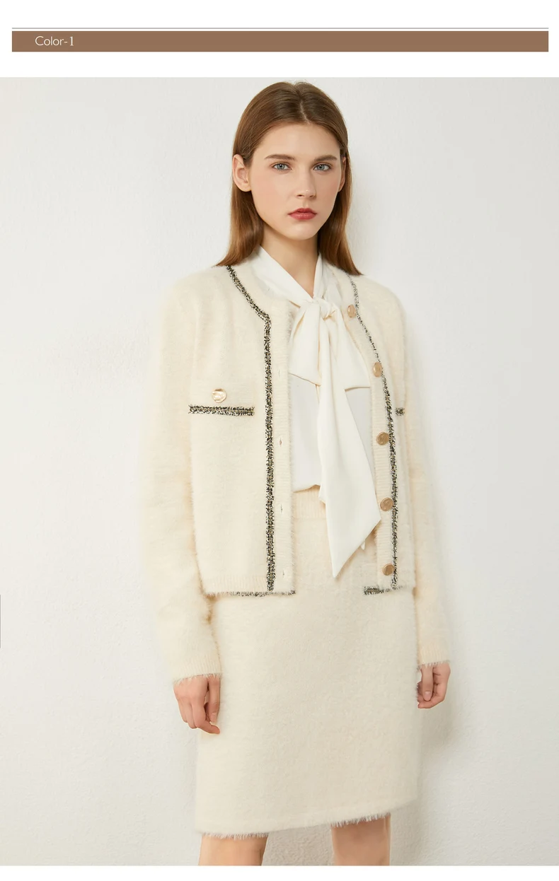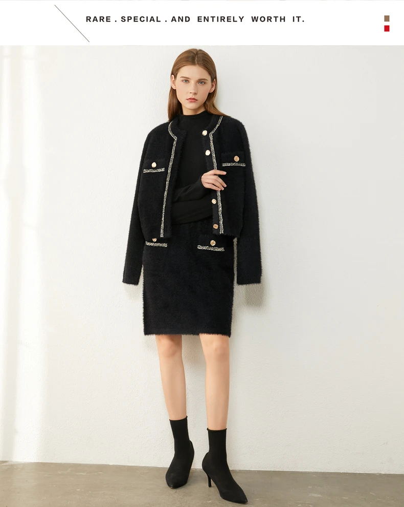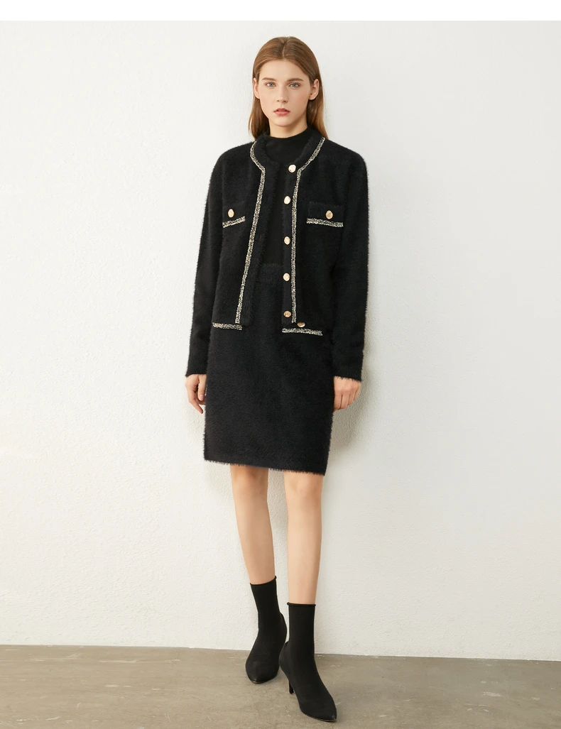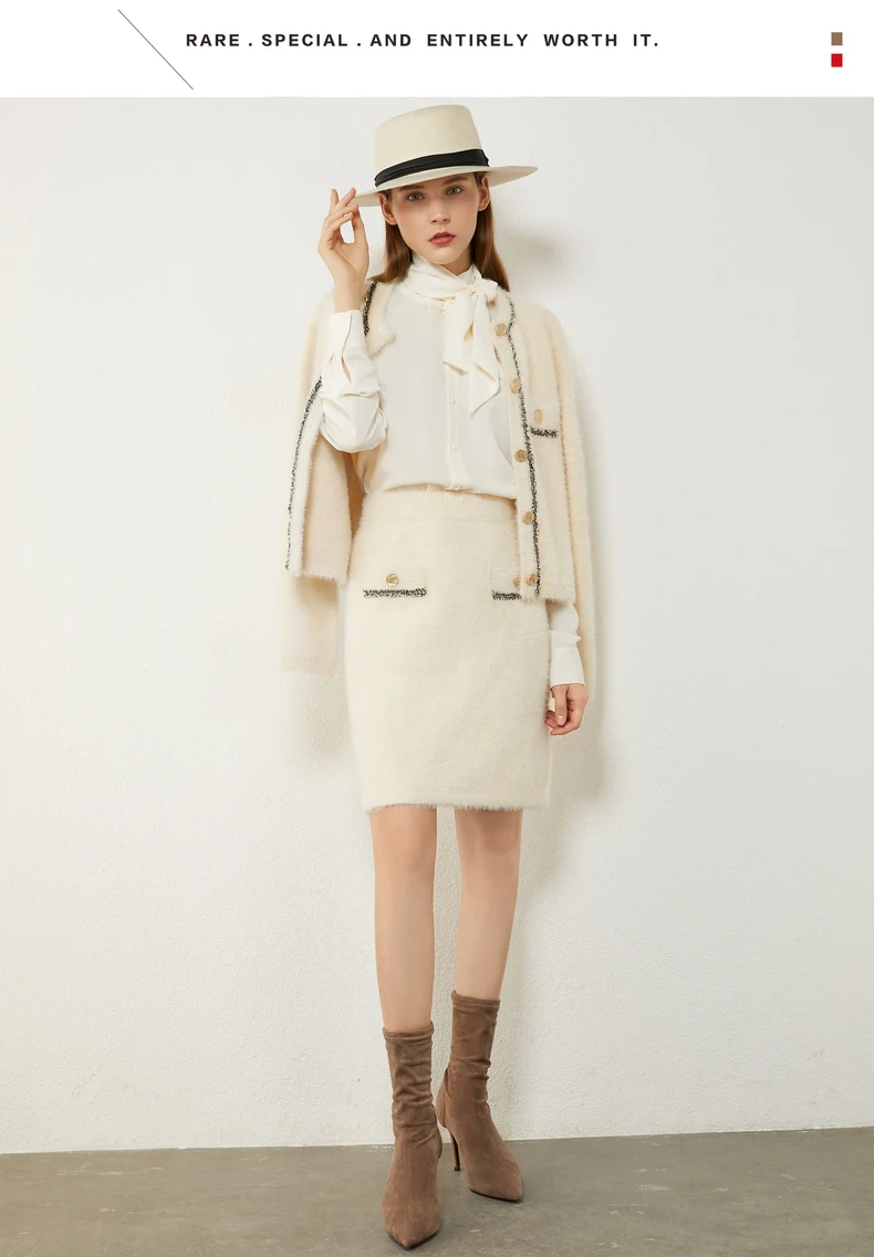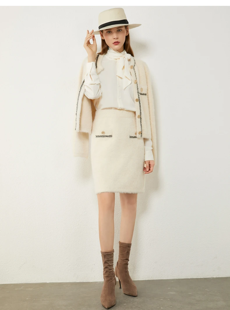 Костюм женский твидовый с юбкой, с высокой талией, Осень-зима, 12030570