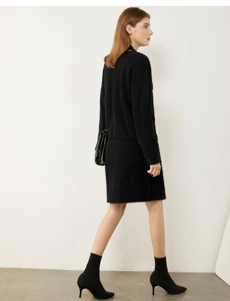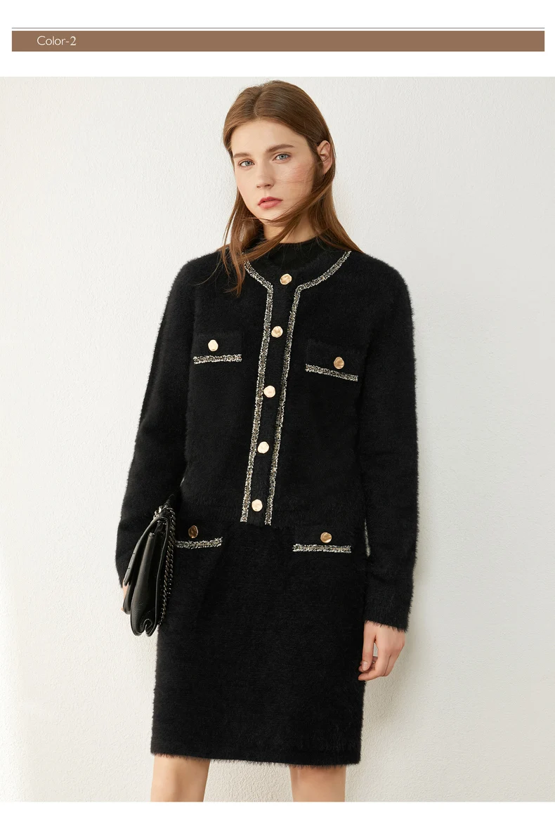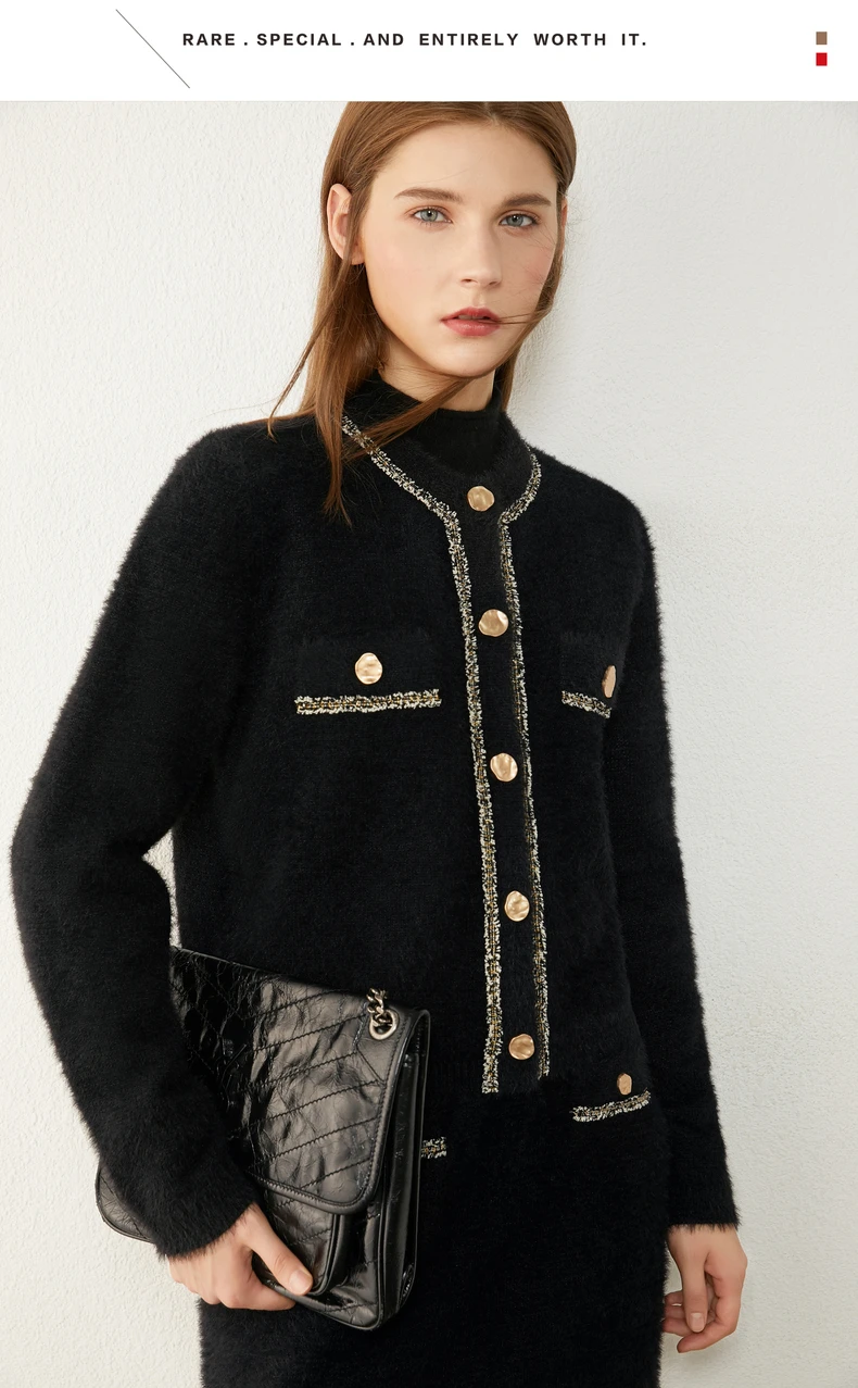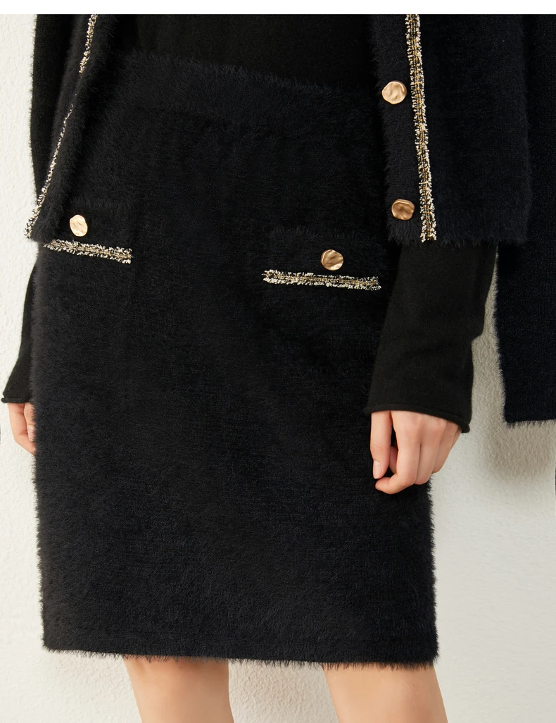 Костюм женский твидовый с юбкой, с высокой талией, Осень-зима, 12030570