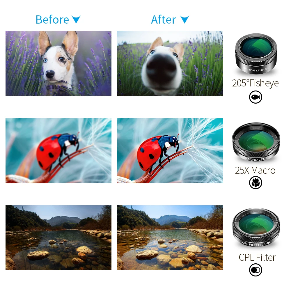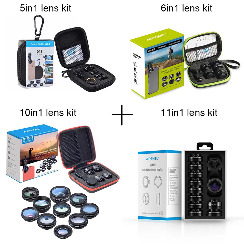 Номер моделиAPEXEL 5in1, 6in1, 10in1, 11in1 Lens Kit