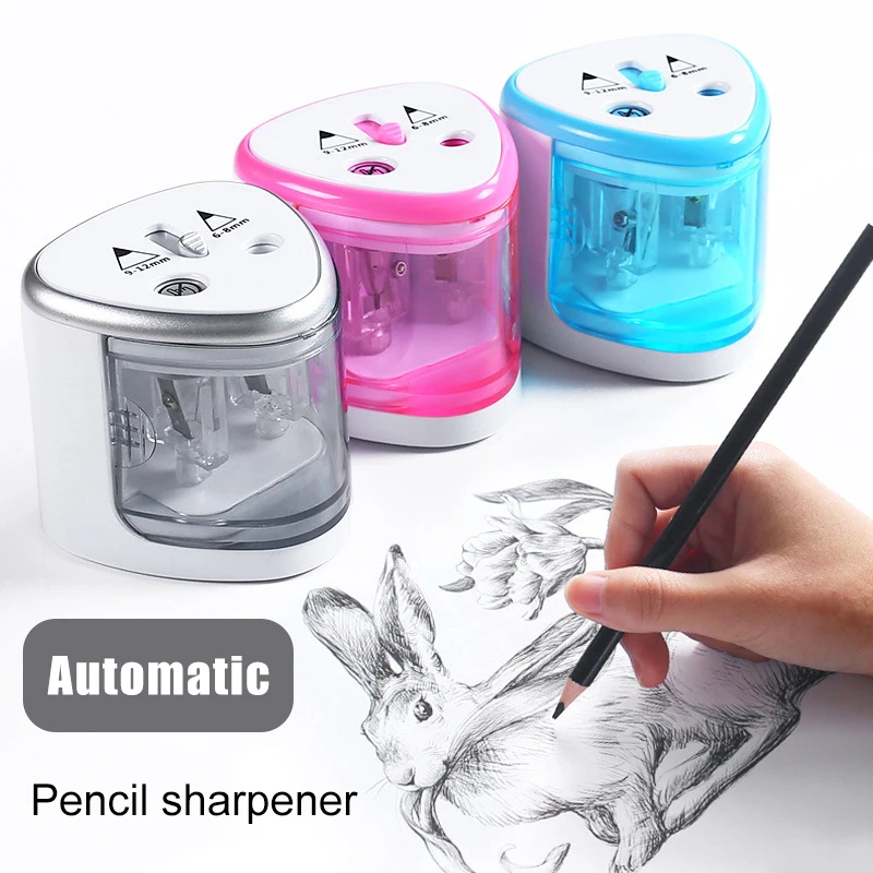 Электрическая точилка для карандашей, портативная, с двойным отверстием, для школы, дома и офиса SEC88