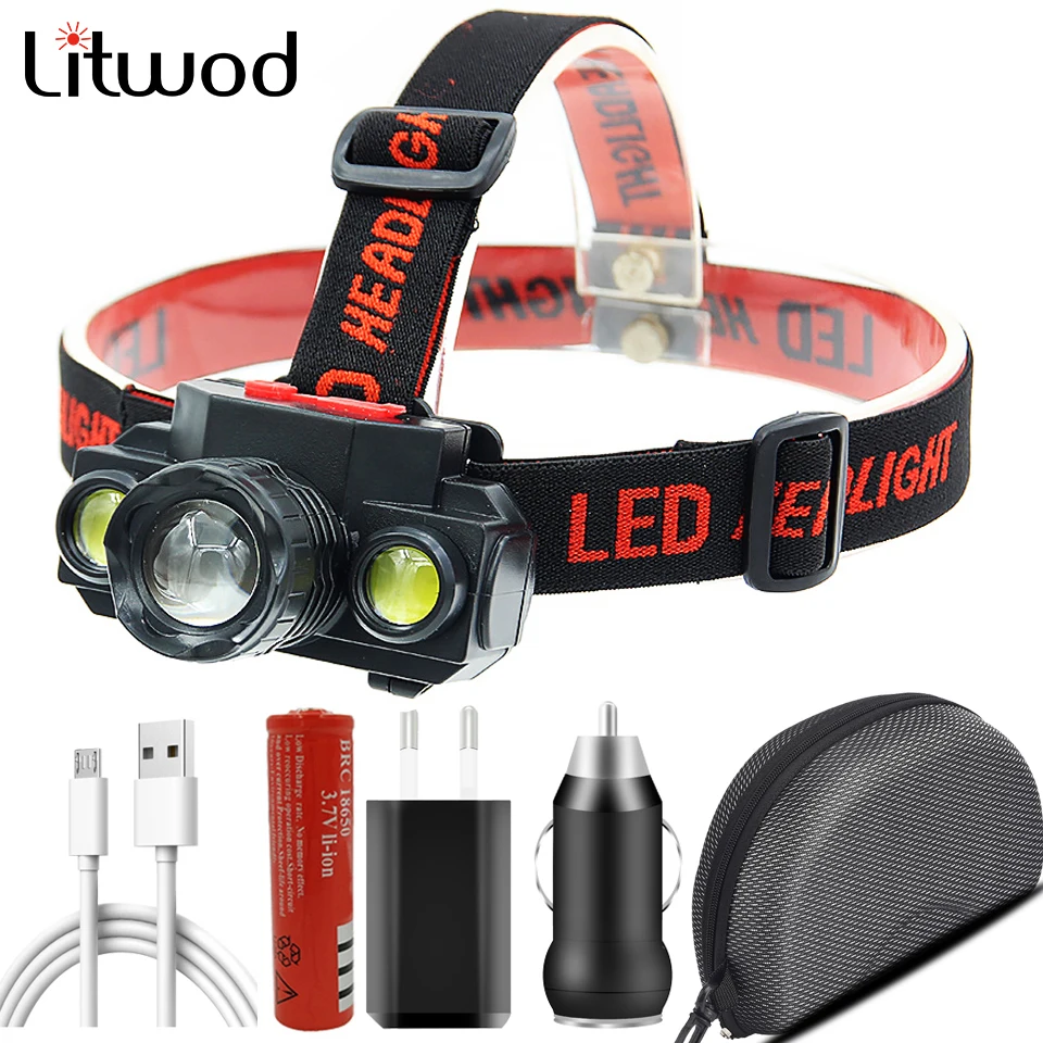Налобный фонарь светодиодный XP-E Q5 COB с перезаряжаемой батареей 18650, налобный фонарь, фонарик для кемпинга Litwod