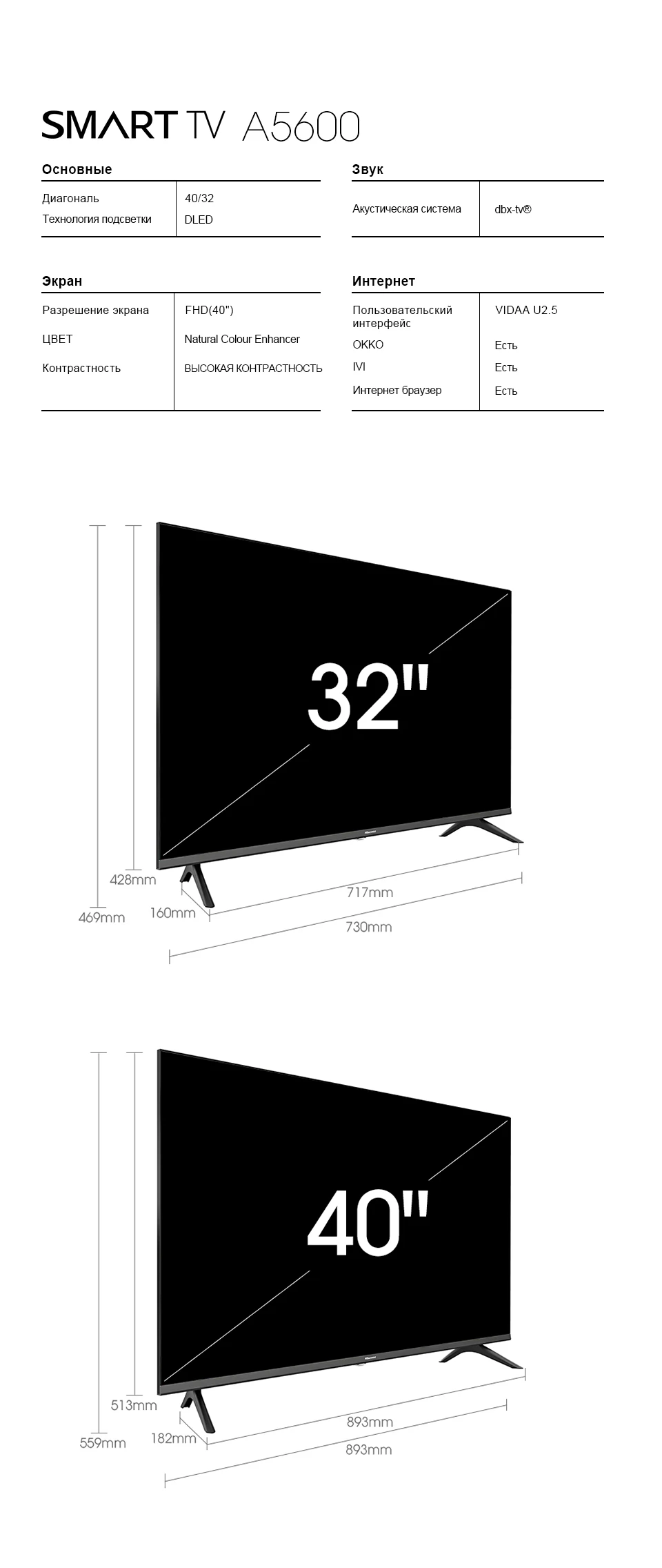 Телевизор 32 дюймов Hisense 32AE5500F HD Smart TV 3239 дюймов TV