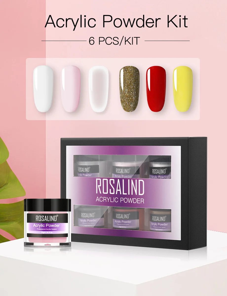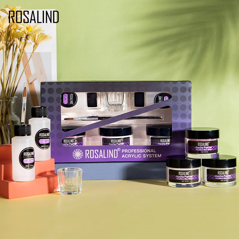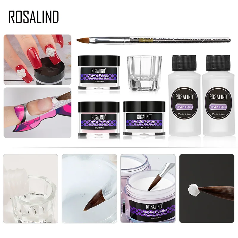 ROSALIND акриловый порошок поли гель для ногтей лак для ногтей украшения для дизайна ногтей набор для маникюра с кристаллами профессиональные аксессуары для ногтей