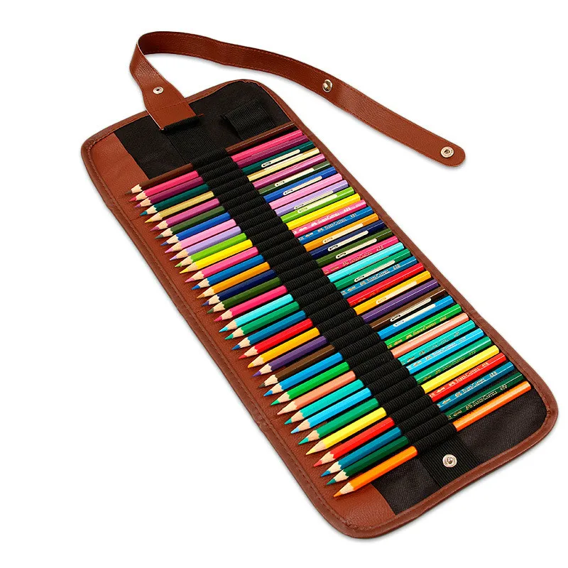 Пенал для карандашей, с 24-72 отверстиями, с цветным грифелем, для обучения, для отдыха, черный холщовый, для хранения, складывающаяся ручка занавесок