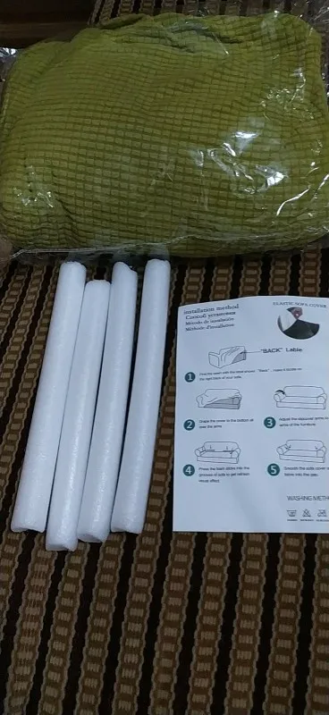 Покупали для защиты дивана от котов. На наш большой диван чехол подошёл, но мы не стали заправлять его с помощью штук из пенополистирола (в комплекте), а оставили так, потому что тогда ткань слишком растягивается и не аккуратно смотрится.