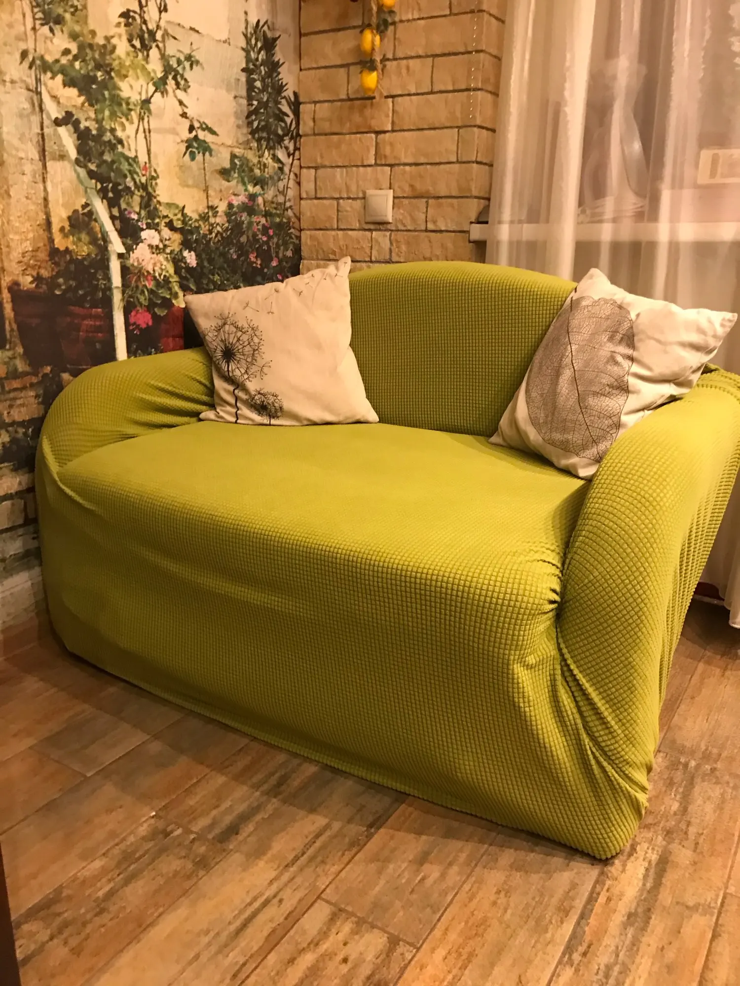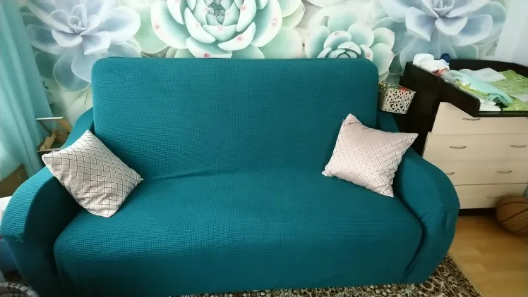 Быстрая доставка, растягивается и хорошо сидит, хотя это стоит много, чтобы держать его в руке. Для двухместного дивана я купил 3-местный чехол. Очень приятный на ощупь.