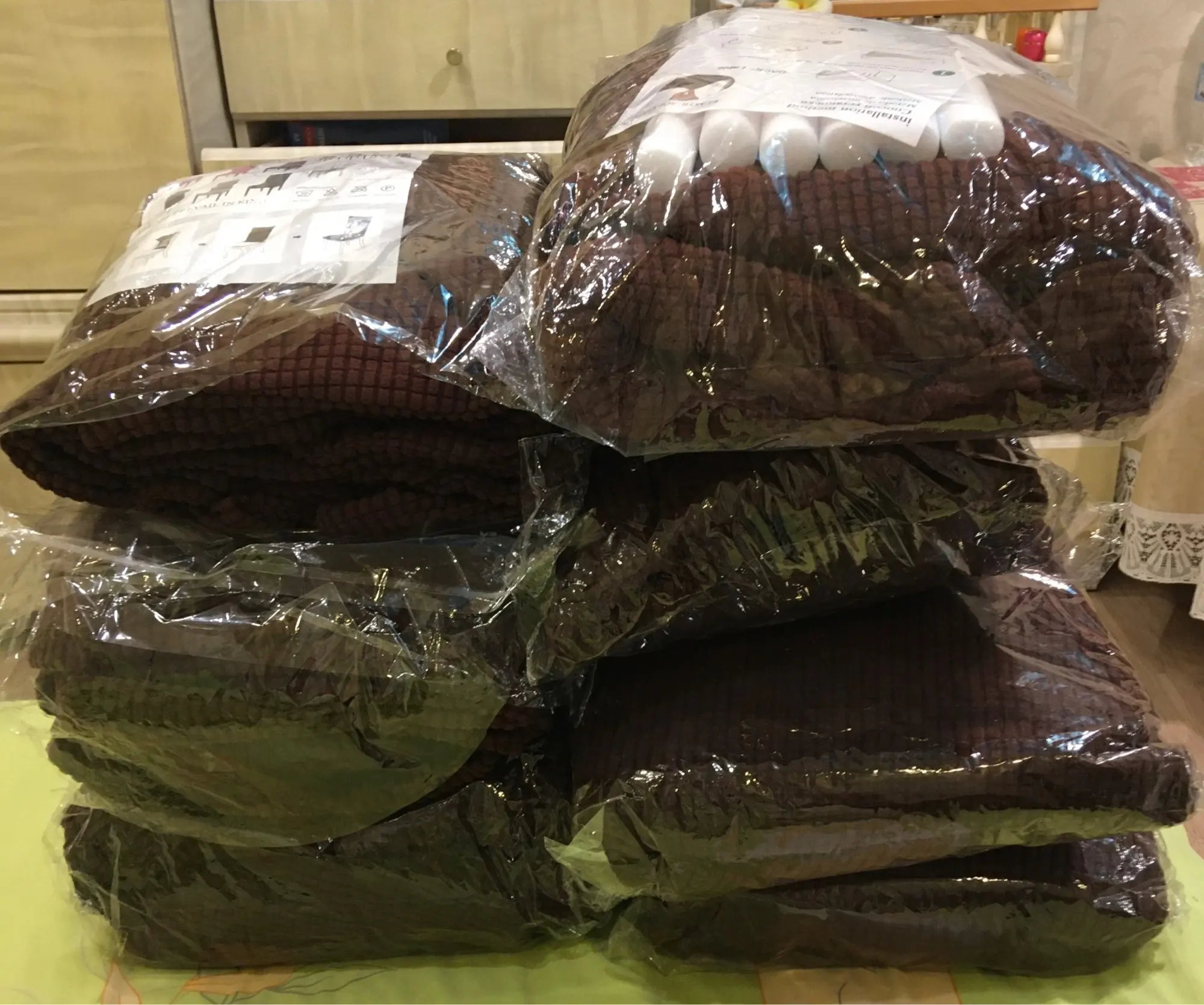 Доставку выбрала плюс, доставили курьером где-то через две недели, рекорд по скорости при заказе 11.11. Качество чехлов понравилось, на ощупь приятные. Взяла на довольно большие кресла размер побольше, как на 2-х местный диван, одинарные чехлы сидят внатяг. Получилось так себе, в одних местах собирается складками, т.к.слишком широкие чехлы, в других по-прежнему длины не хватает пока без фото, ждём нг)