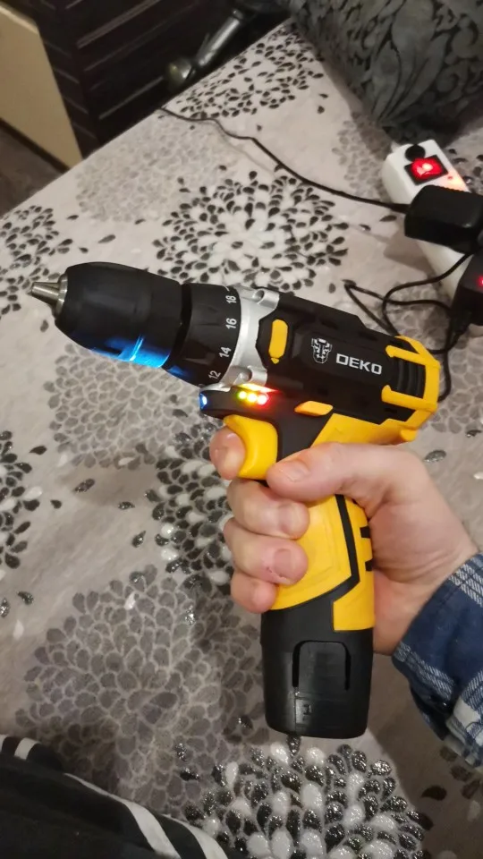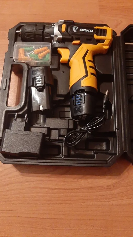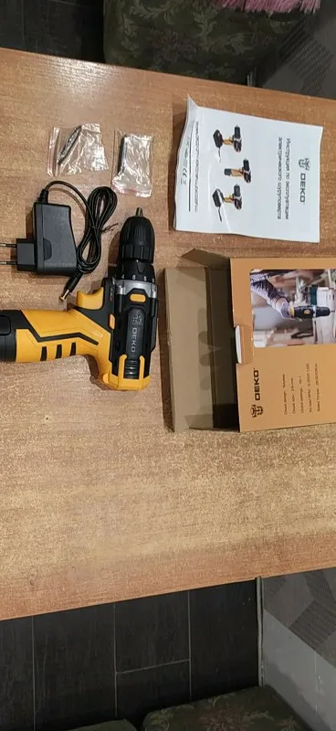 Шуруповерт пришел. Доставлен достаточно аккуратно, упаковка не пострадала. Довольно долго, как по России, но праздники же, все мы все понимаем)) Пришел заряженный, работает из коробки. Лампочки горят, крутится. Причем, как для 12 вольт, тяга вполне себе. Качество сборки и материалов, конечно, не дотягивает до дорогих аналогов, но за эту цену очень даже. Короче для домашних дел рекомендую. Продавцу спасибо. З.Ы. Очень заинтриговал "электротормоз", в старом шурике такого не было, думал баг, а почитал инструкцию оказалась фича))