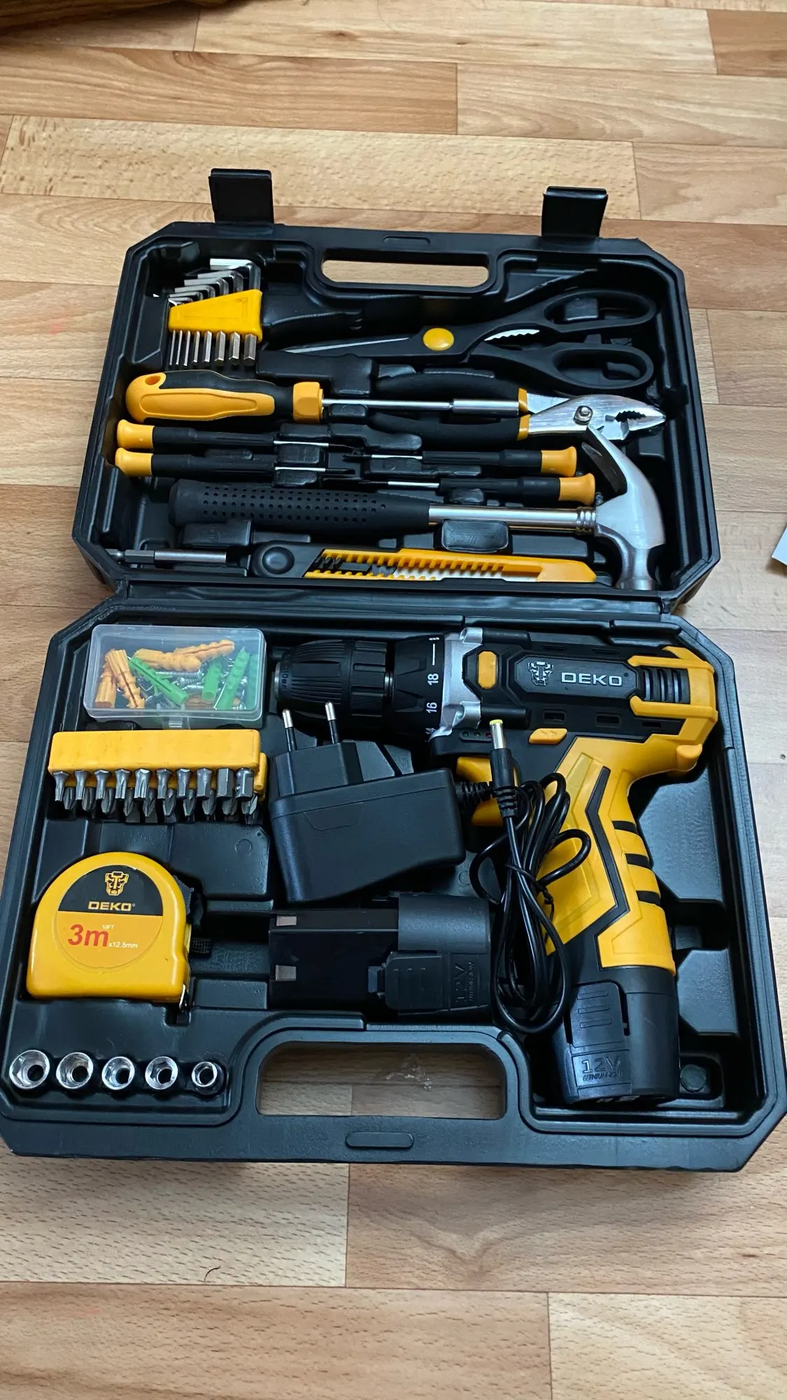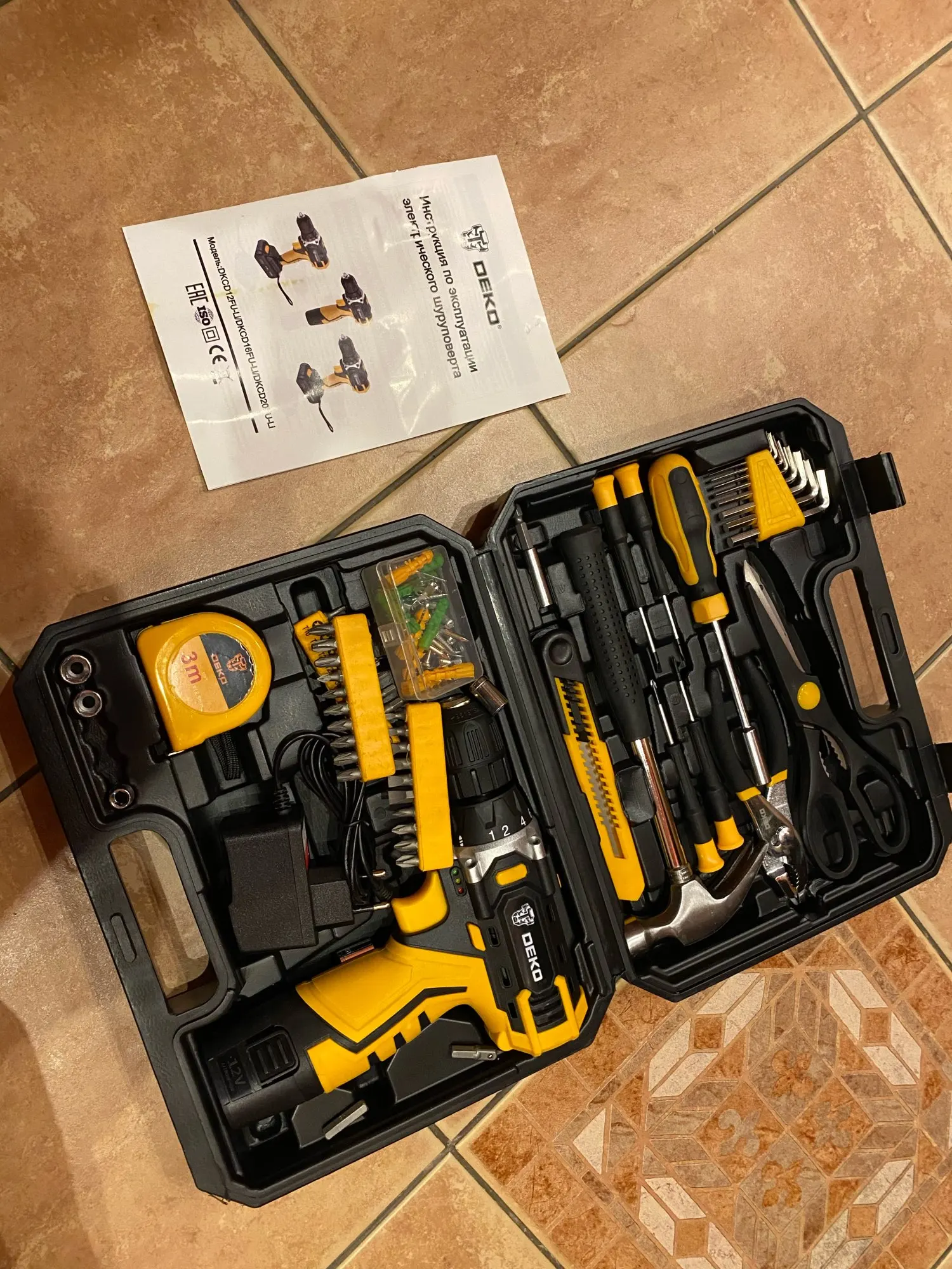Заказ пришел довольно быстро. за 5 дней прибыл во владимирскую область ,в период праздников и выходных. Товар соответствует описанию. заказывал полный комплект с инструментом. Данный набор оправдывает свои деньги на 100%. Данной покупкой я очень доволен. Шуруповерт достаточно легкий и простой, имеет две скорости и реверс. Беение патрона минимальное, качество достойное. Шуруповерт идеально подойдет для сборки мебели или для работы в автосервисе. Инструмент входящий в набор так же выполнен неплохо. В наборе есть все необходимое на фото все видно. Комплектация данного набора очень порадовала. Пользуюсь им второй день, жена уже спрятала от меня все сверла и саморезы, чтобы я ничего не сверлил и не прикручивал. Данного продавца и товар рекомендую без зазрения совести. Цена и качество идеально совпадает. единственный минус который я пока что заметил это то что в кейсе не совпадает отлив под зарядное устройство, отлив меньше чем зарядник ,но на работу и использование это не влияет. СПАСИБО!!