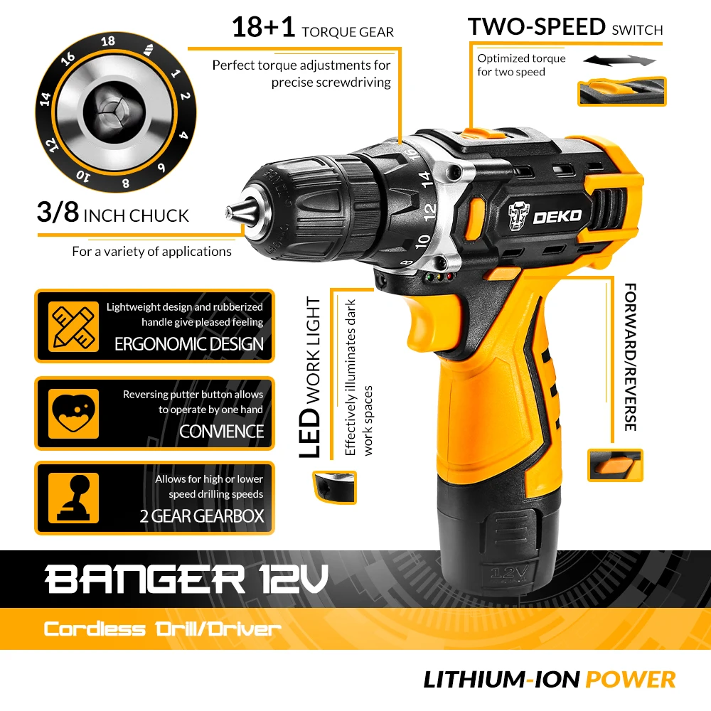 Аккумуляторная дрель-шуруповерт DEKO DKCD12FU-Li