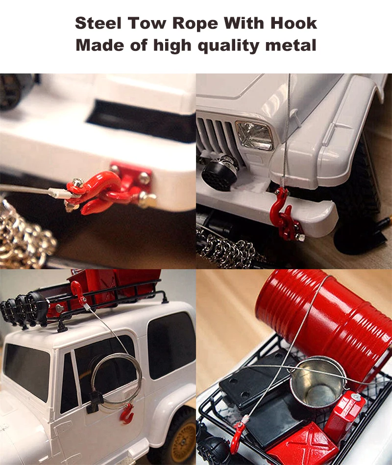 Особенности:1.100% новый и высокое качество.2. Изготовлен из высококачественного металла.3. Простота установки и долговечность.4. Сделайте ваш автомобиль более привлекательным и прохладным.Описание:Этот стальной трос для буксировки с крючком делает ваш автомобиль более привлекательным и прохладным. Он прост в установке и использовании.Характеристики:Наименование товара: стальной трос для буксировки с крючкомМатериал: металлЦвет: серебристый и красныйВес: около 16 гДлина: около 86 смПодходит для: 1/10 RC Cralwer Car Traxxas TRX4 Axial SCX10 90046 RC4WD D90 TF2 Tamiya CC01 и так далееПосылка включает в себя:1 * стальной трос для буксировки с крючком
