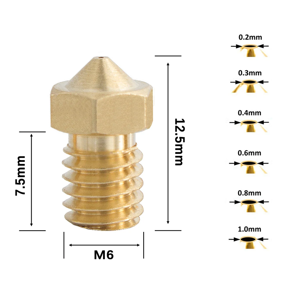 2. Широкая совместимость: набор латунных насадок для сопла принимает резьбу M6, такой же размер, как MK8 MK7 UM2 CR10, который имеет Совместимые Размеры с Экструдером сопла, совместимый с большинством 1,75 мм PLA ABS 3D принтеров.