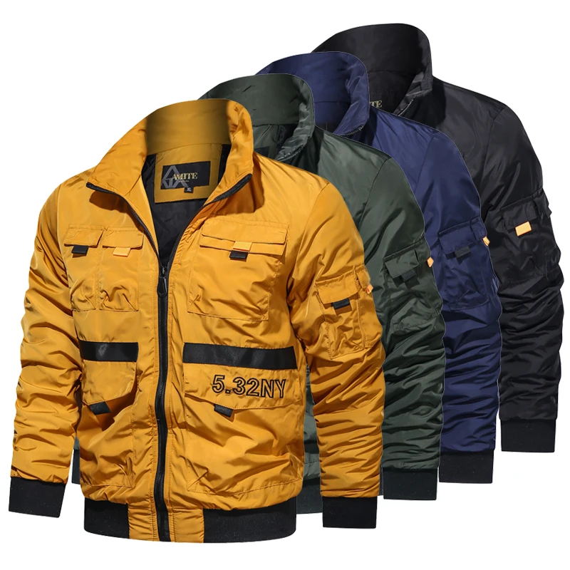 Ветровка мужская с множеством карманов, бомбер в стиле милитари, Повседневная бейсбольная куртка на молнии, осень 2022