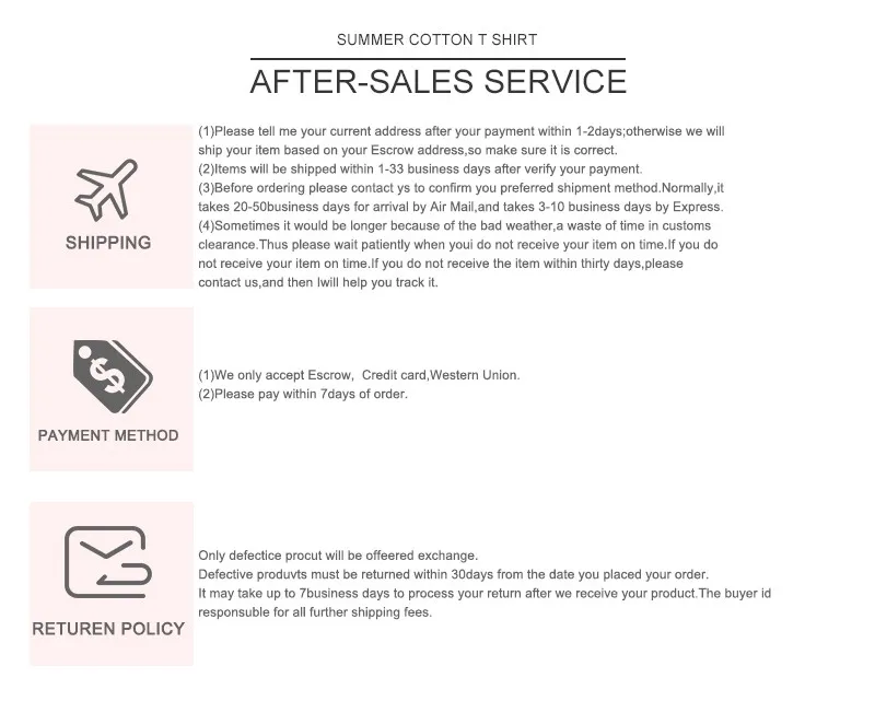 ~~ Добро пожаловать в мой магазин ~~ Надеюсь, у вас есть хорошие покупки, большое спасибо за то, что пришли Два заказа одного и того же товара имеют скидку Поддержка агента доставки Примечание: 1. Все размеры Азиатские, меньше, чем американские и европейские размеры, пожалуйста, проверьте размер перед покупкой. Из-за разницы в способах измерения, пожалуйста, допускайте отклонение в размере 2-3 см. Все наши продукты изготовлены с высоким качеством, и вы получите возврат, который вам нужен. Все наши продукты изготовлены с высоким качеством, мы поддерживаем индивидуальные изображения, пожалуйста, свяжитесь с нами бесплатно. Различные Азиатские размеры, от S M L XL XXL XXXL XXXXL Быстрая Доставка в течение 5 дней Время доставки: 25-40 рабочих дней (скорость прибытия в разные страны отличается) 2. Примечание: Из-за разницы между различными дисплеями Изображение может не отражать фактический цвет изделия. 3,1 см = 0,39 дюйма, 1 кг = 2,2 фунтов 4. Пожалуйста, подтвердите свой адрес и номер телефона. Подробный уличный адрес включает номер дома. Подробный получатель, подробный почтовый индекс. Это подробная контактная информация, чтобы убедиться, что вы получите товар. Это очень важно Большое спасибо за чтение! Мы очень рады Вам помочь!
