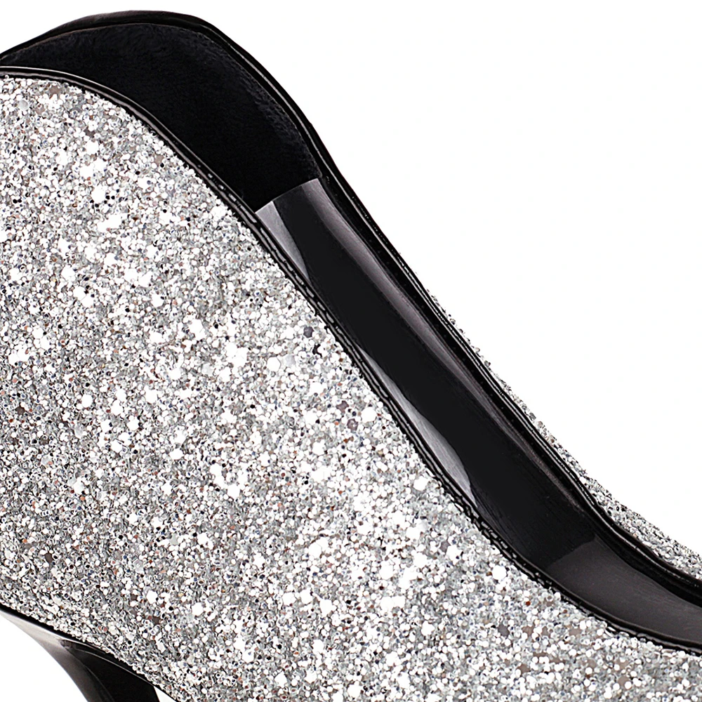 Модные женские блестящие туфли-лодочки пикантные ботильоны с открытым носком женские осенние модельные туфли без застежки на высоком каблуке с глубоким v-образным вырезом Новинка 2020, 31, 32, 33
