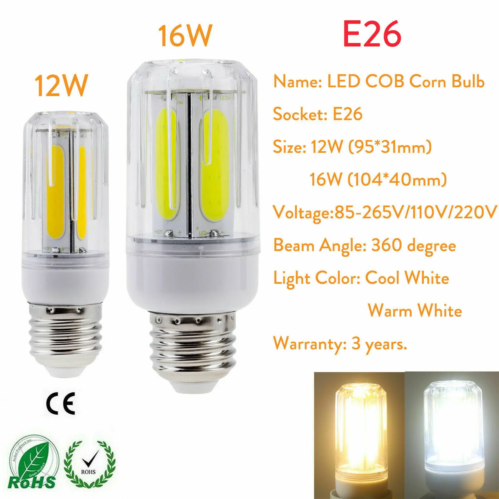 AC 85-265V 110V 220V без мерцания супер яркие домашние настольные лампы 360 светильник ing 12W 16W E27 E14 E12 E26 B22 светодиодный COB кукурузный светильник