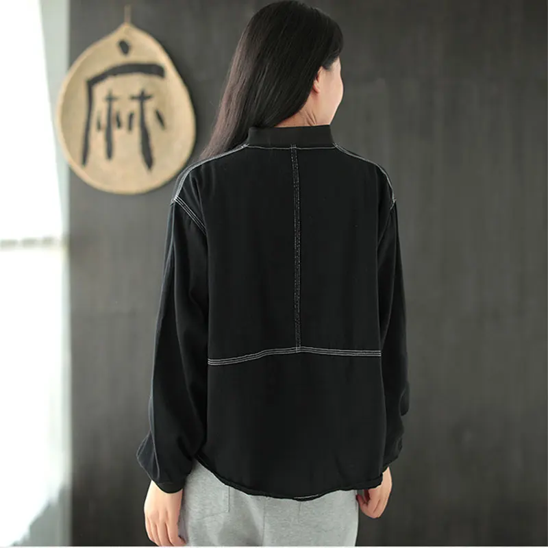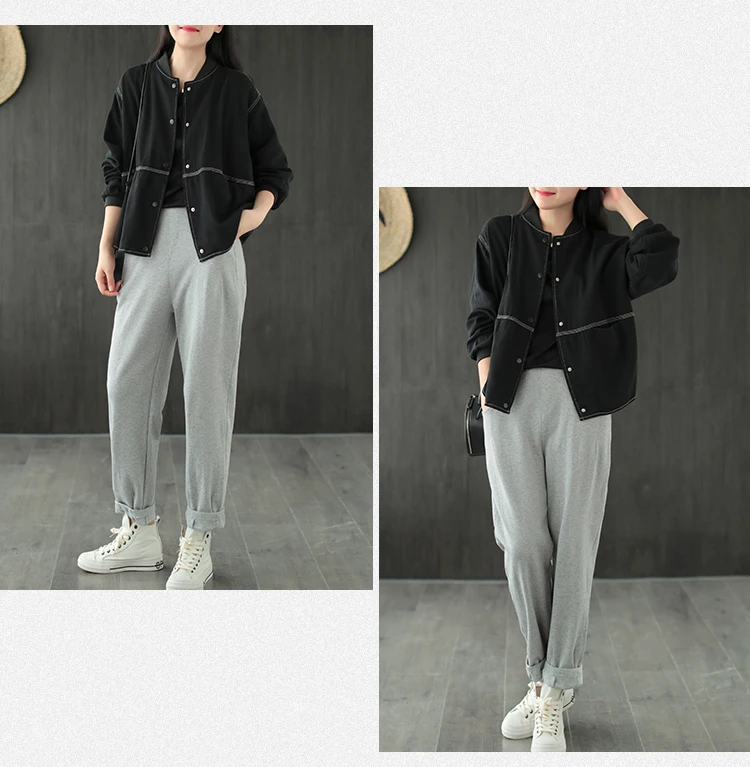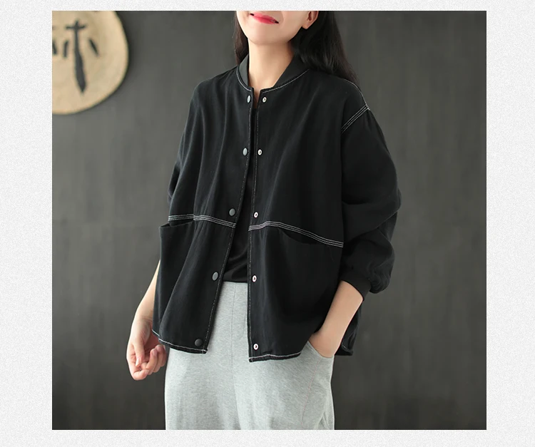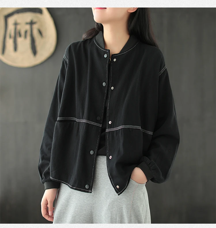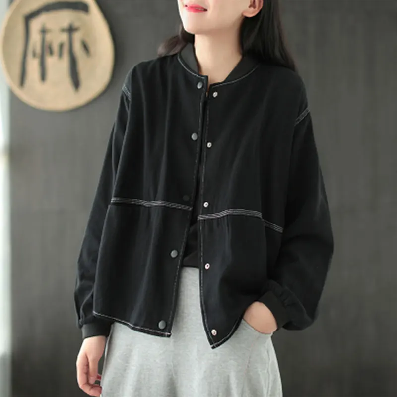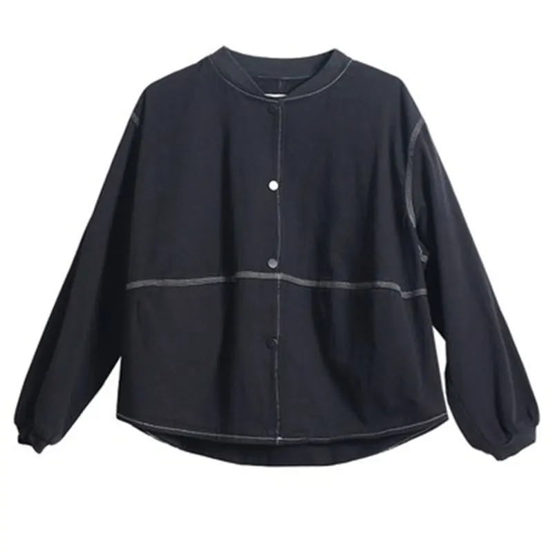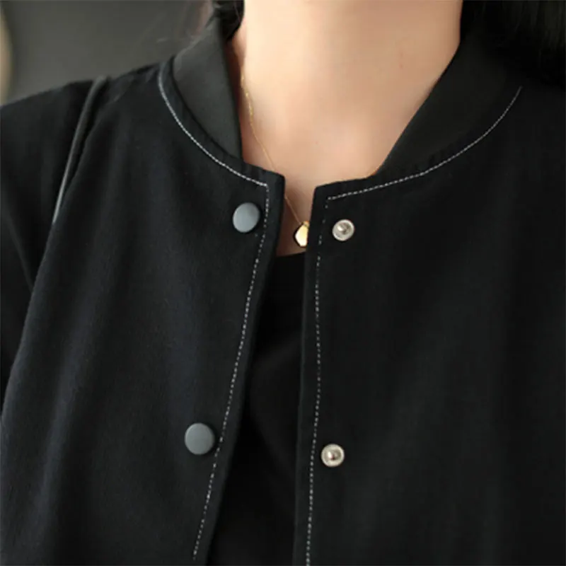 Куртка женская короткая однобортная с длинным рукавом, свободная черная Повседневная однобортная однотонная, пальто универсального кроя, M447, весна-осень