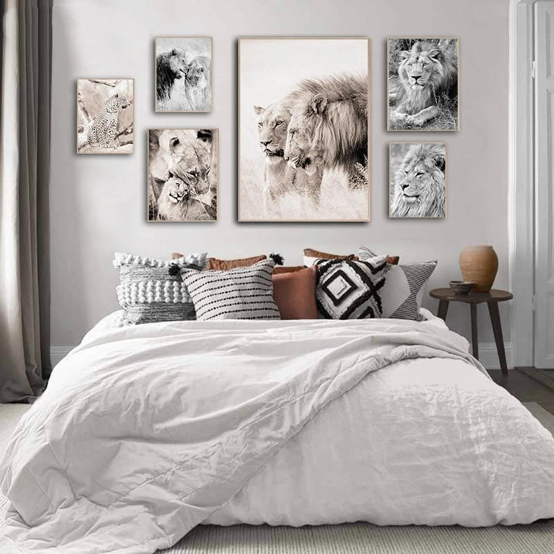 Плакаты с изображением диких животных Лев леопарда, черные и белые картины на холсте, плакаты и принты в скандинавском стиле, Современная Настенная картина, декор для гостиной