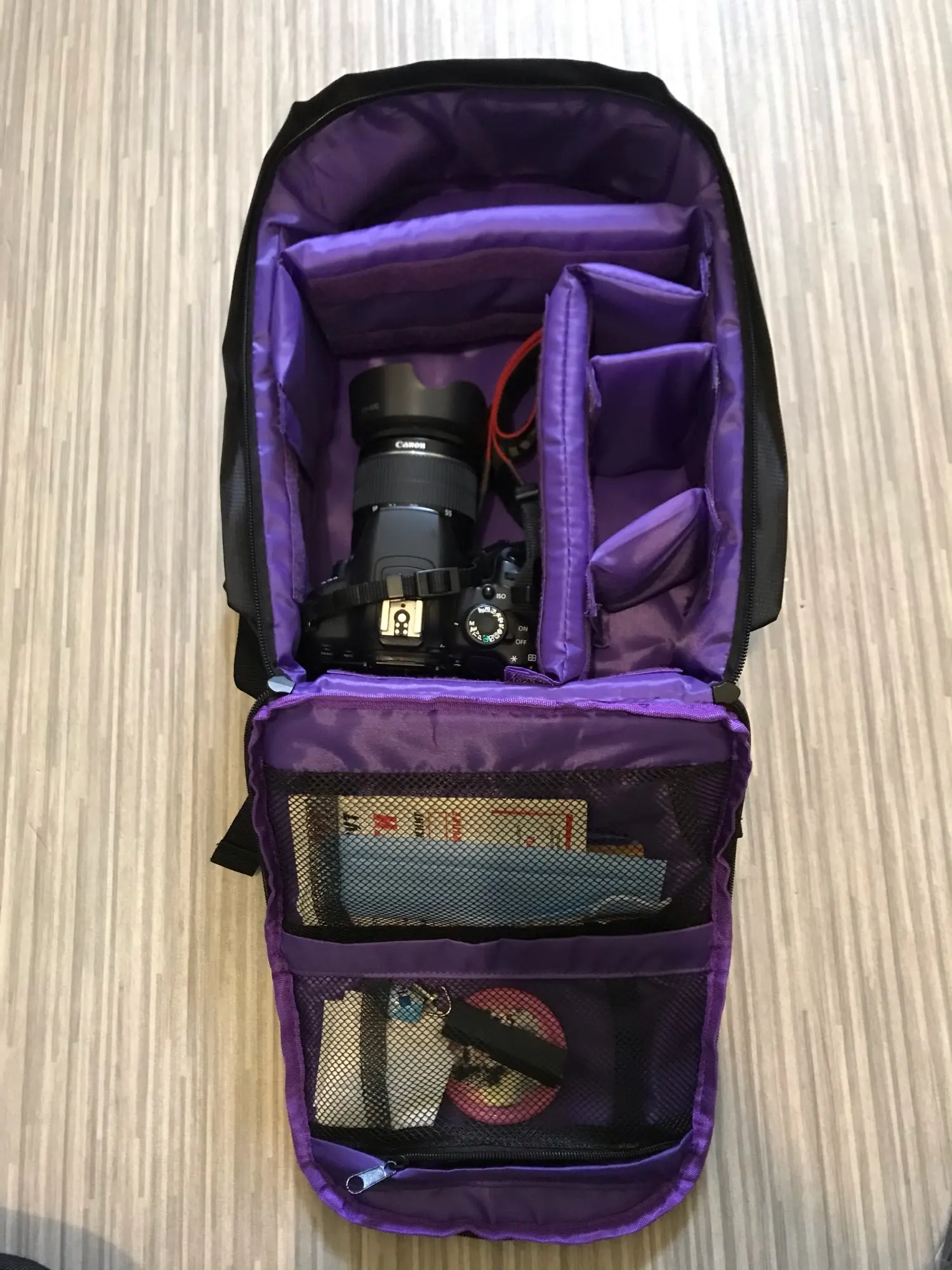 Шикарный рюкзак. Очень удобная транспортировка фотоаппарата и объективов. Внутри ничего не болтается. Единственная сложность была расположить перегородки внутри(провозился 5 минут). Что ещё хотелось бы отметить. Очень быстрая доставка, хорошое качество рюкзака. Всем рекомендую данный товар и данного продавца.