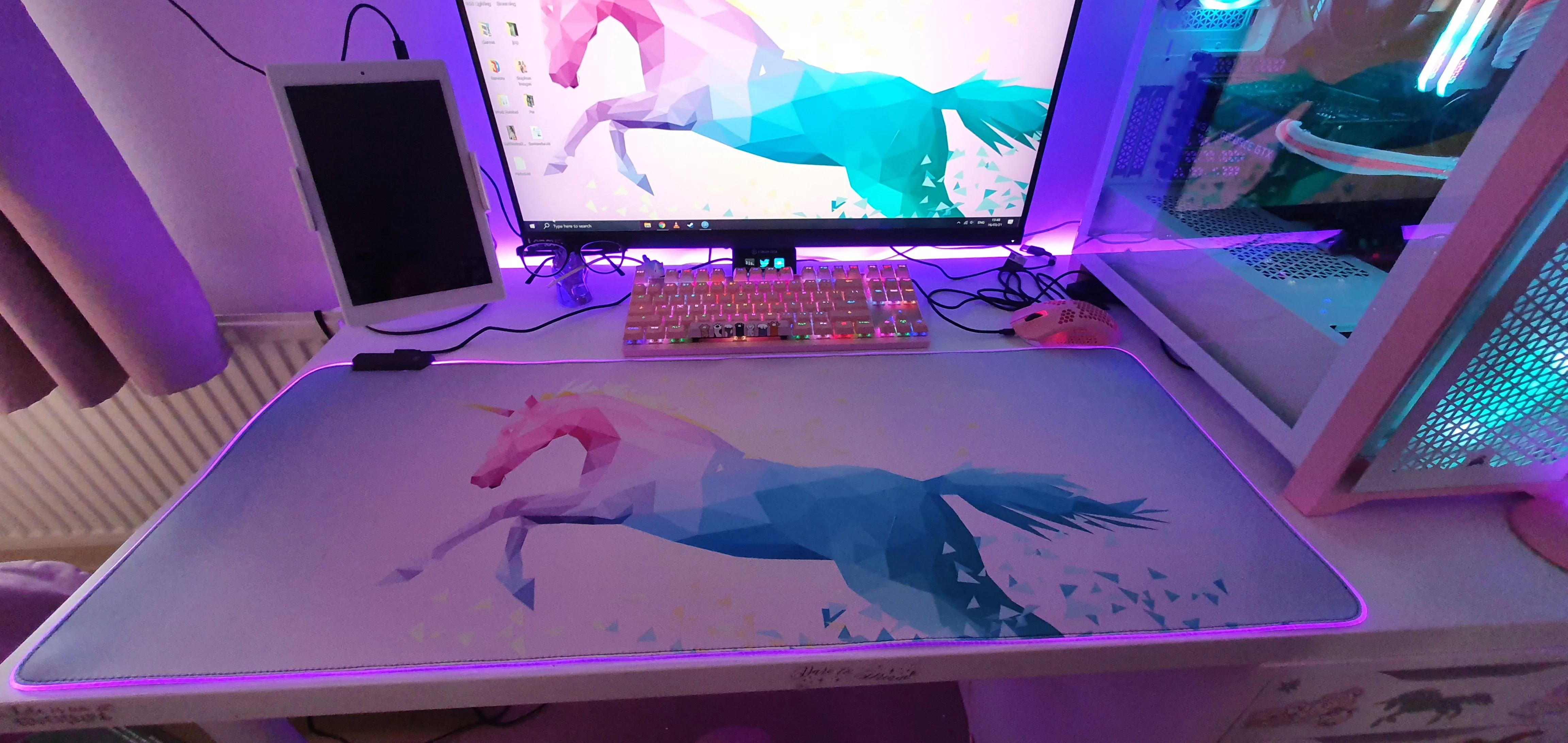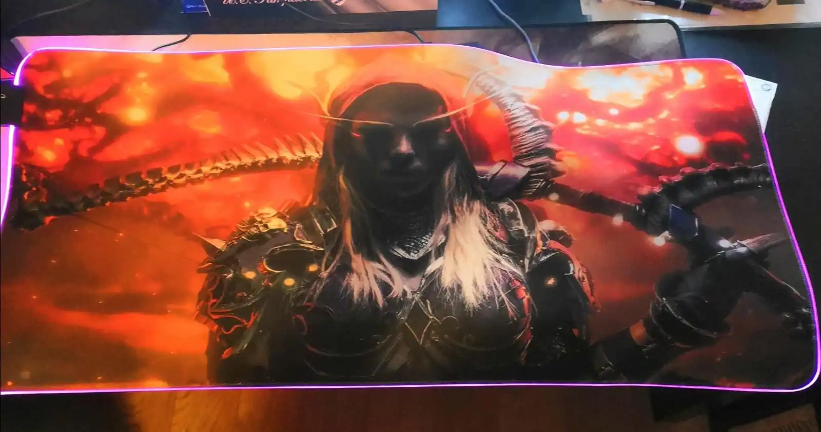 Продавец молодец, сделал все быстро и грамотно по моему дизайну, пришло очень быстро, единственный косяк, я просил соединение с usb сверху, а не слева. Обещали что все будет сверху, но пришло слева, повезло что я заказал верный размер и кабель не мешает выдвигать коврик из под стола)